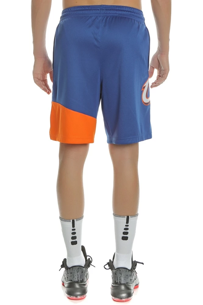 Αθλητική μακριά βερμούδα σε μπλε απόχρωση με πορτοκαλί λεπτομέρειες.