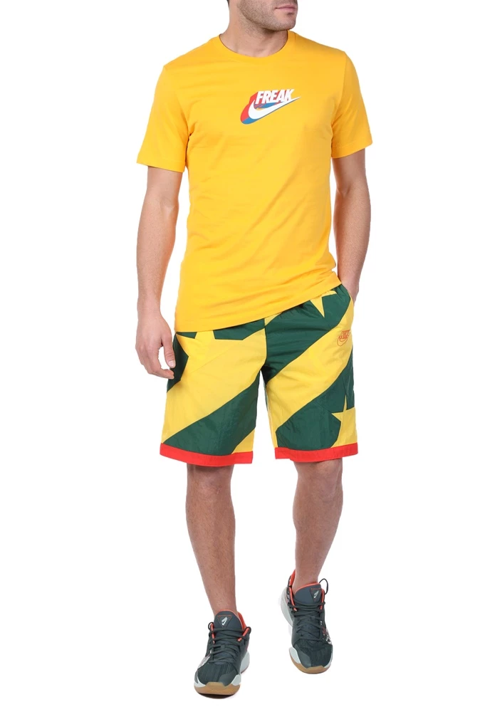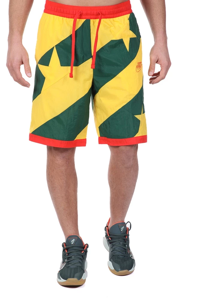 Ανδρική βερμούδα NIKE THROWBACK σε πράσινη και κίτρινη απόχρωση. Είναι κατασκευασμένη από ύφασμα με τεχνολογία Dri-Fit που απομακρύνει τον ιδρώτα και χαρίζει στεγνή και δροσερή αίσθηση.