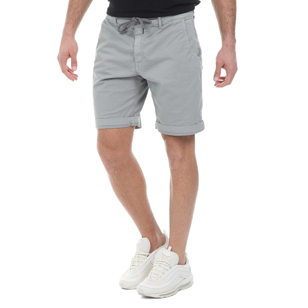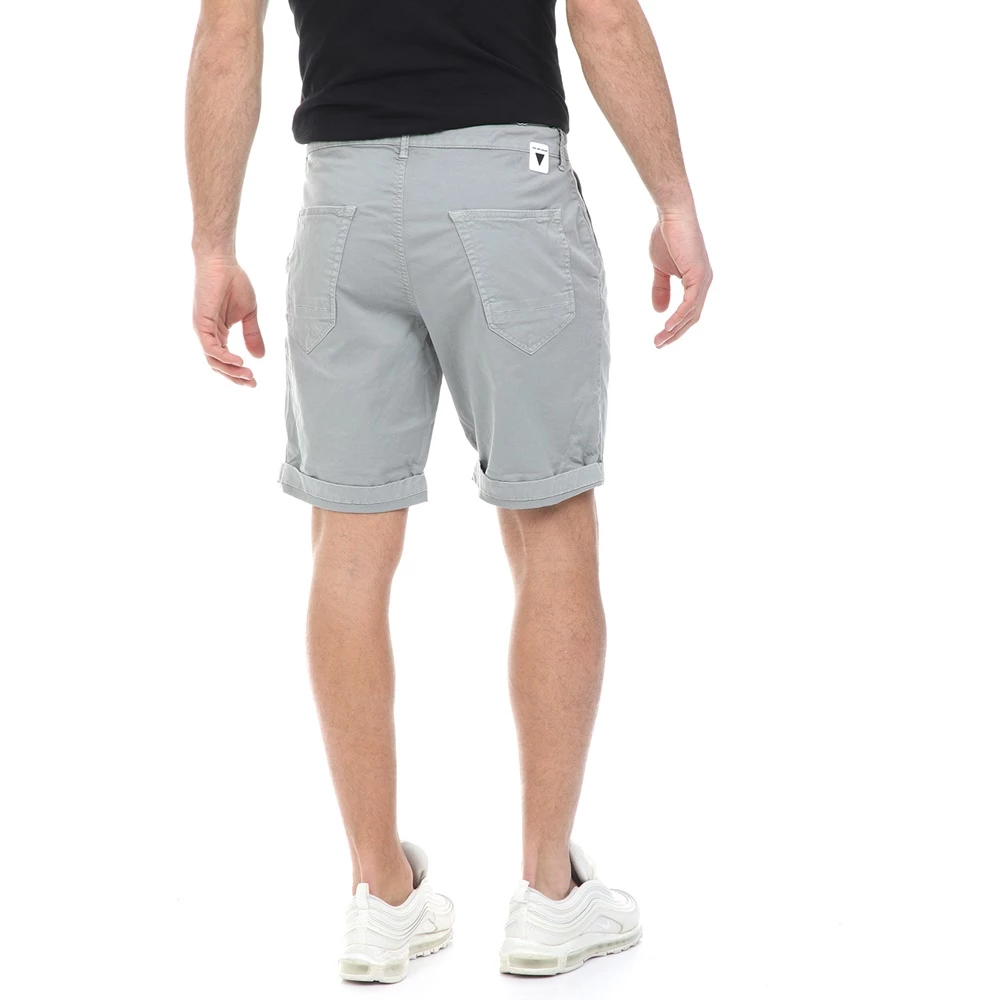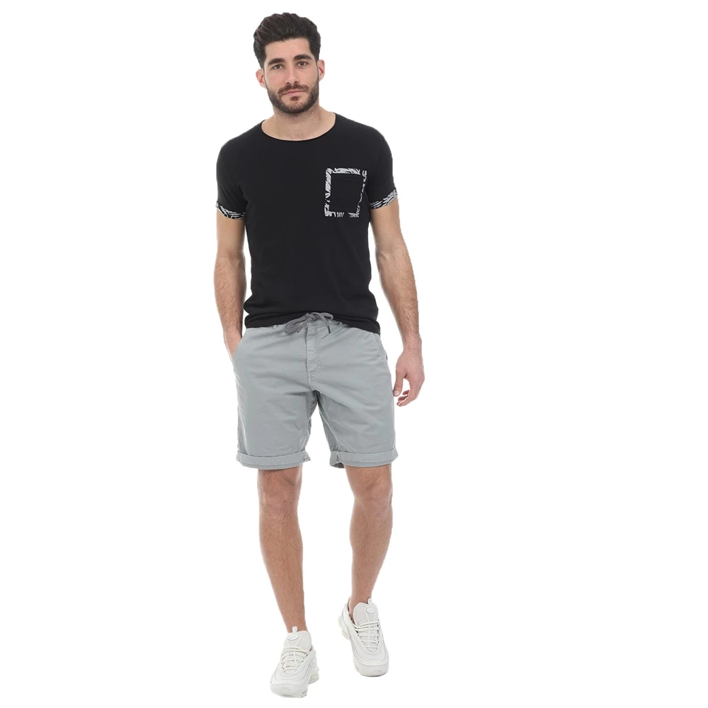 Ανδρική βερμούδα WHY NOT σε γκρι απόχρωση. Σε στιλ chino, με άνετη εφαρμογή και κορδόνι που δένει στη μέση. Διαθέτει δύο τσέπες στα πλάγια και δύο τσέπες πίσω. Κλείνει με κουμπί και φερμουάρ μπροστά.