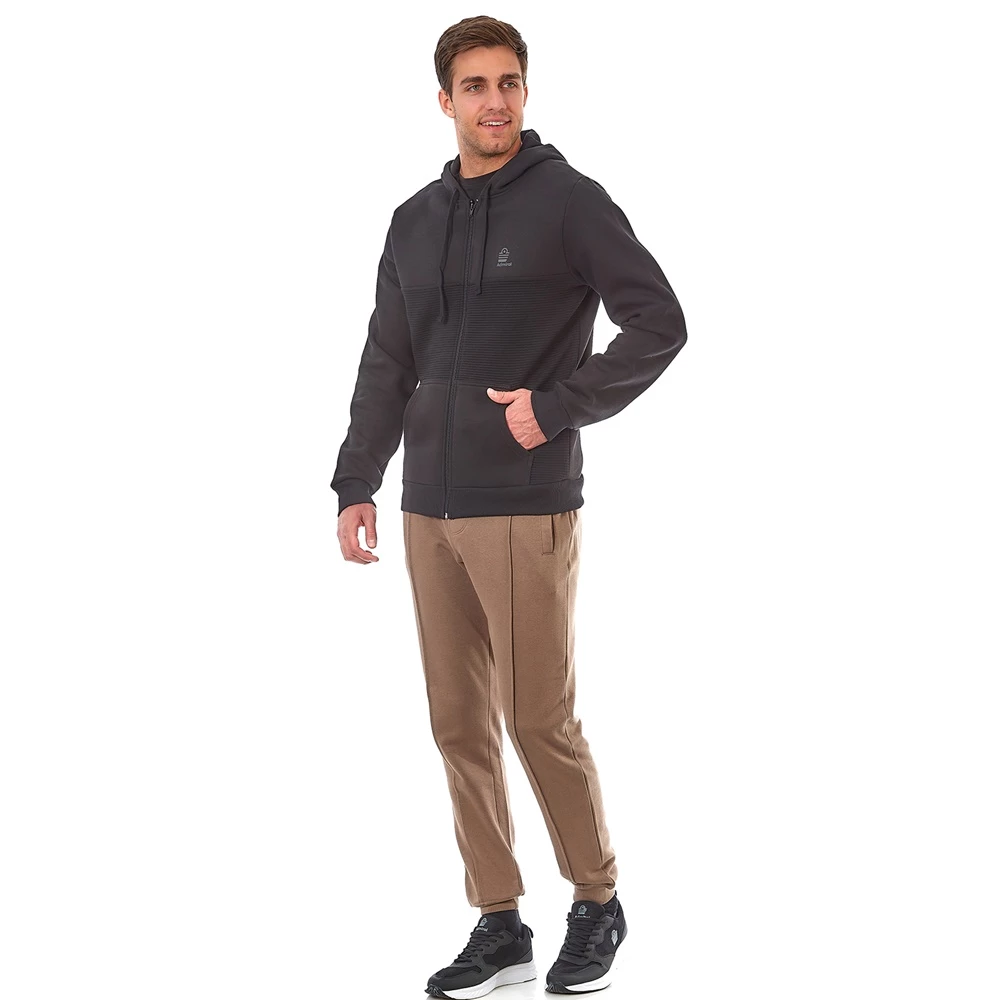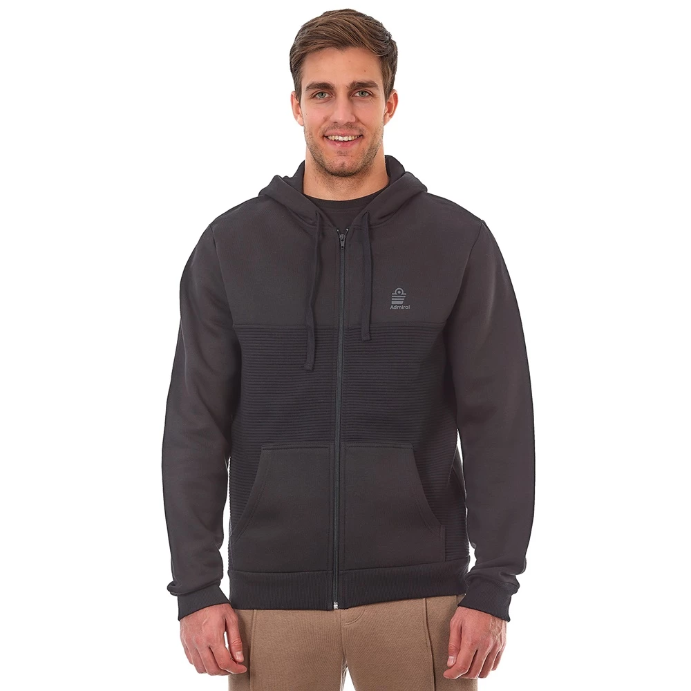Ανδρική ζακέτα Admiral Kansal σε μαύρο χρώμα. Σε κλασική γραμμή, διαθέτει κουκούλα, ανάγλυφο σχέδιο και τσέπες στη μέση.