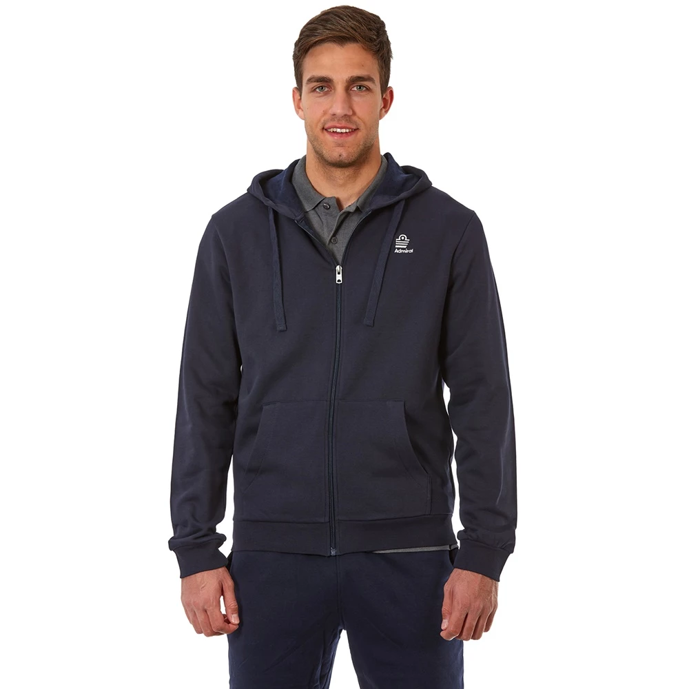 Ανδρική ζακέτα Admiral Logo σε μπλε απόχρωση. Σε μοντέρνο σχέδιο με λογότυπο Admiral στο πάνω μέρος και τσέπες. Διαθέτει κορδόνι στην κουκούλα και ελαφριά επένδυση fleece για περισσότερη προστασία από το κρύο και έχει λάστιχο στο τελείωμα και στα μανίκια.