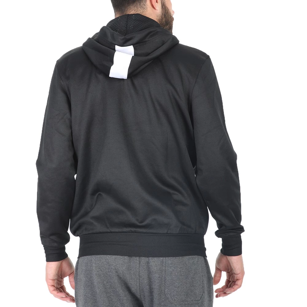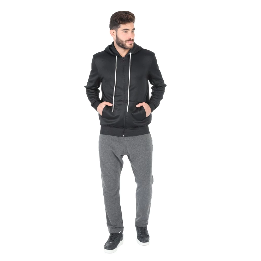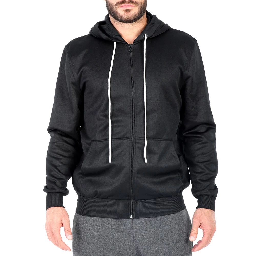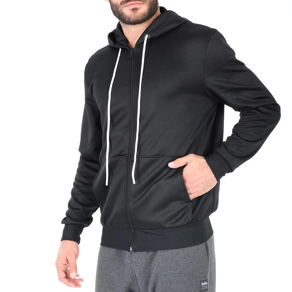 Ανδρική ζακέτα φούτερ BODYTALK σε μαύρο χρώμα. Είναι σε ίσια γραμμή, με μακριά μανίκια και στρογγυλή λαιμόκοψη. Διαθέτει κουκούλα με κορδόνι, δύο τσέπες μπροστά και κλείνει με φερμουάρ. Λάστιχο ριμπ στις μανσέτες και την βάση.