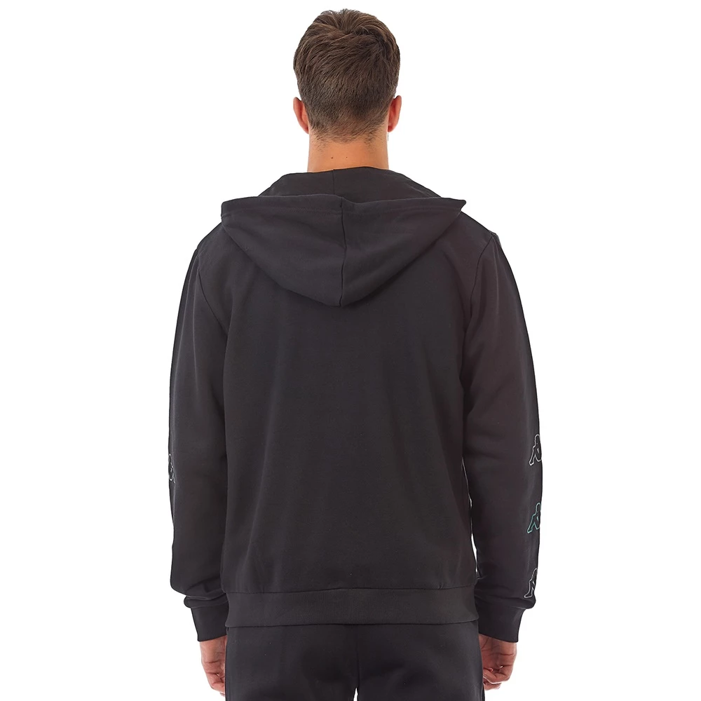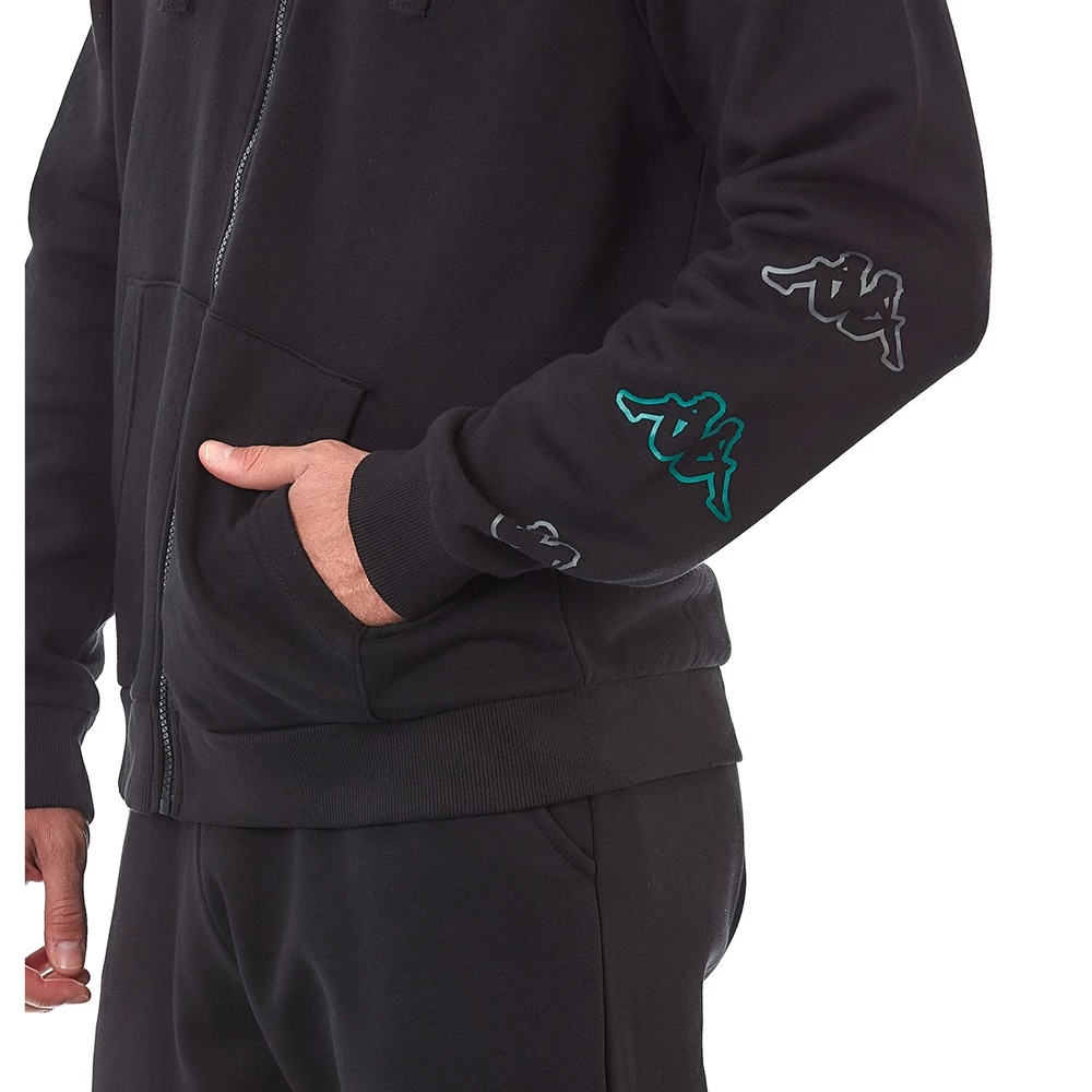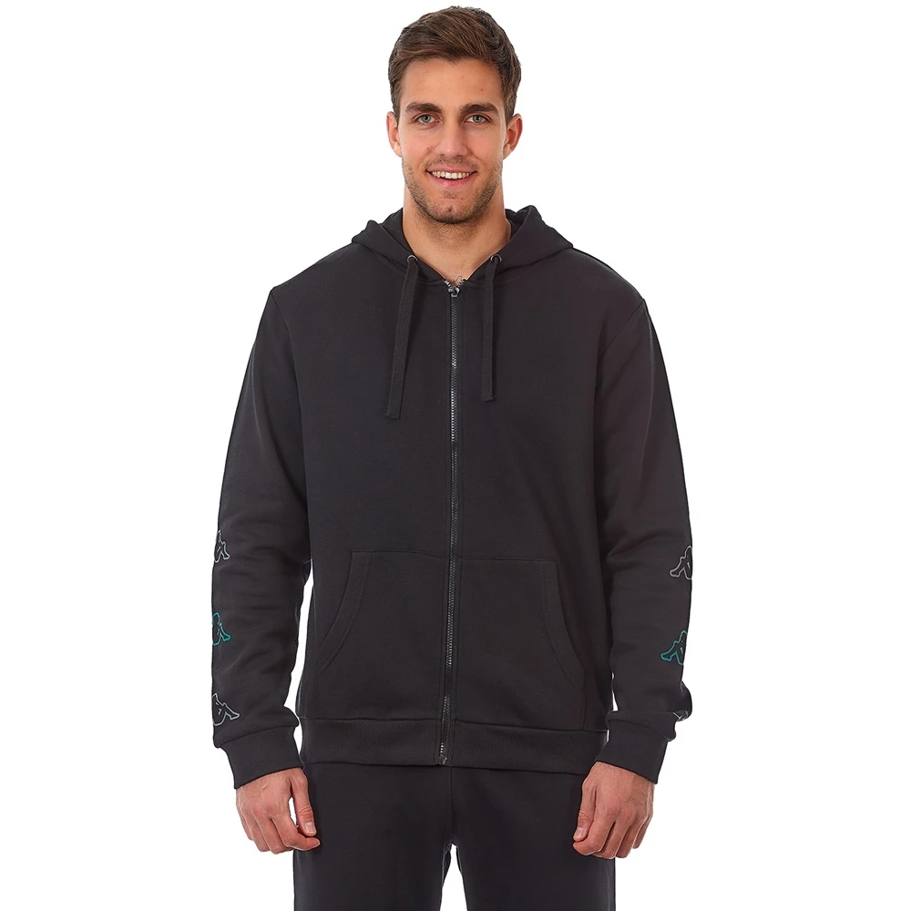 Ανδρική Ζακέτα Kappa Tisan σε μαύρο χρώμα. Διαθέτει κουκούλα και τσέπες, ανάγλυφο λογότυπο περιμετρικά στα μανίκια και ελαφρυά fleece εσωτερικά.