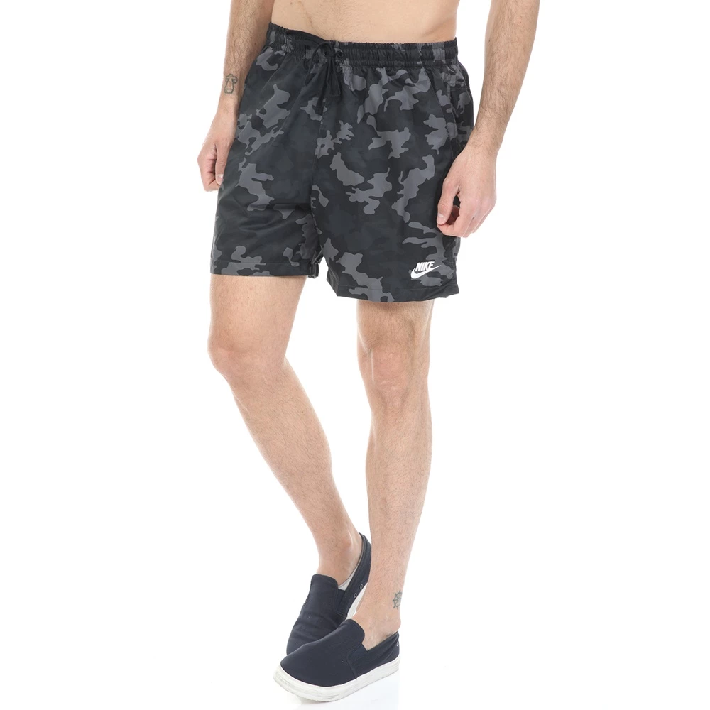 Ανδρικό αθλητικό σορτς NIKE σε μαύρο χρώμα, με μοτίβο παραλλαγής. Από ανάλαφρη σύνθεση, με διχτυωτή επένδυση για άνεση και δροσερή αίσθηση. Διαθέτει λάστιχο με κορδόνι στη μέση, δύο τσέπες στα πλάγια και μία τσέπη πίσω.