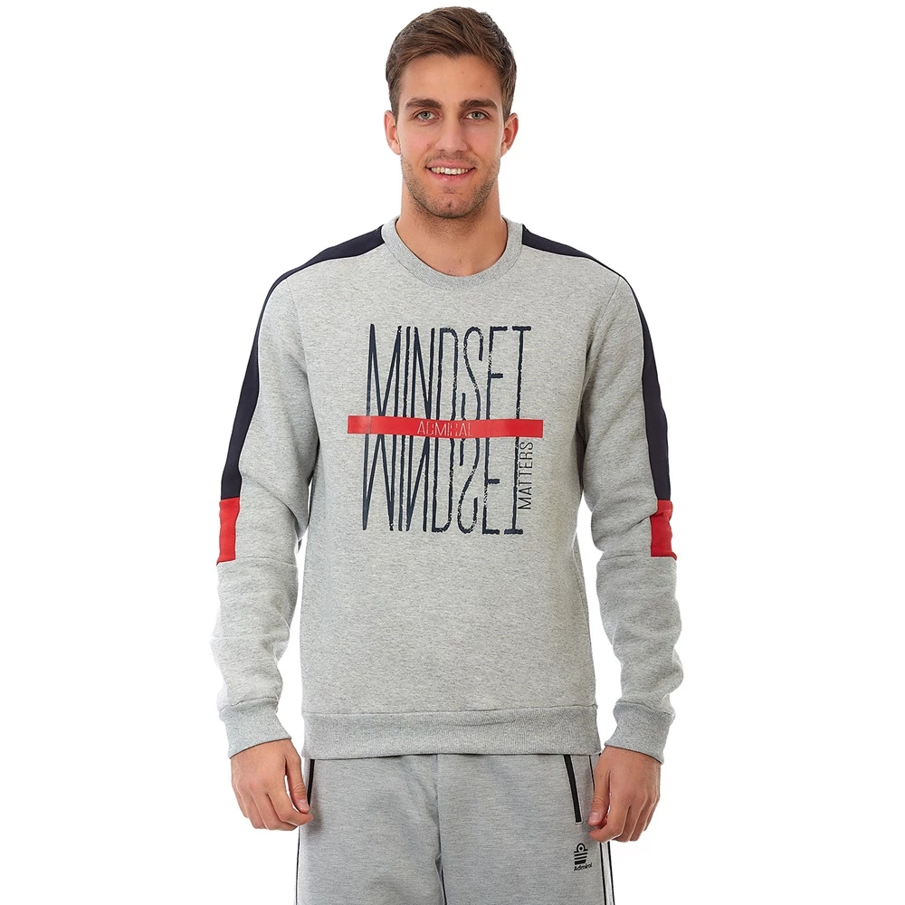 Ανδρικό φούτερ Admiral Mater σε γκρι απόχρωση. Σε ίσια γραμμή, με ελαφριά fleece επένδυση εσωτερικά. Διαθέτει ανάγλυφο σχέδιο στα μανίκια και στάμπα στο στήθος.