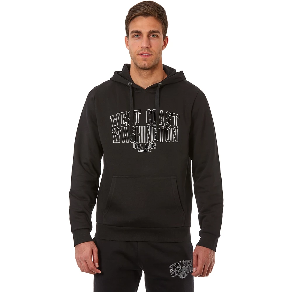 Ανδρικό φούτερ Admiral Oeste σε μαύρο χρώμα. Από πολύ μαλακό ύφασμα με ελαφριά επένδυση fleece για περισσότερη προστασία από το κρύο. Διαθέτει στάμπα στο στήθος και ενιαία τσέπη μπροστά.