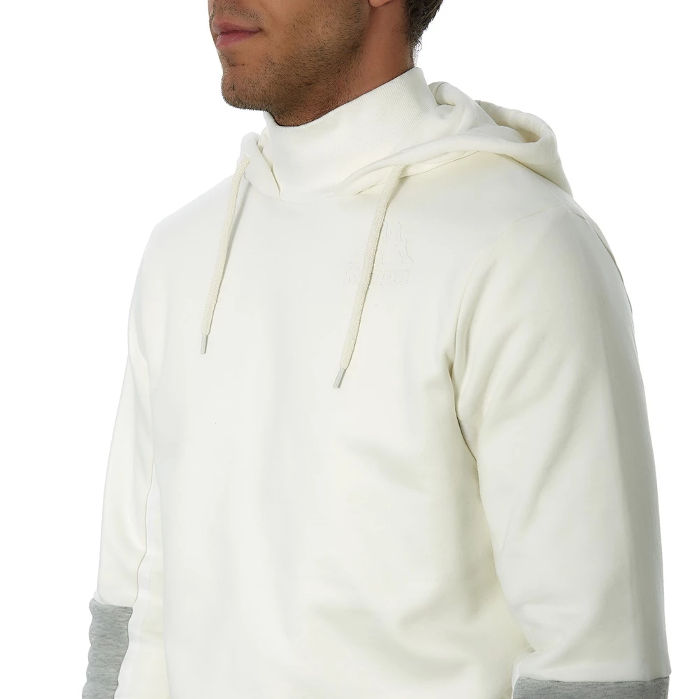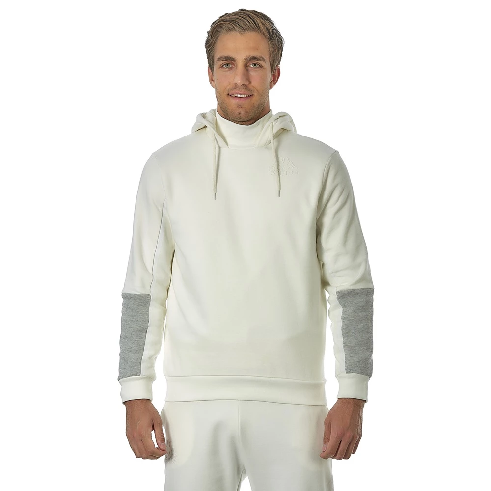 Ανδρικό φούτερ με Κουκούλα Kappa Dave σε λευκό χρώμα. Σε κλασσικό σχέδιο, με κουκούλα που περιλαμβάνει κορδόνι, λογότυπο στην πλάτη και διχρωμία στο μανίκι.
