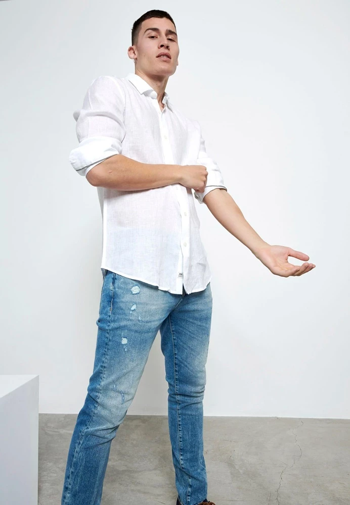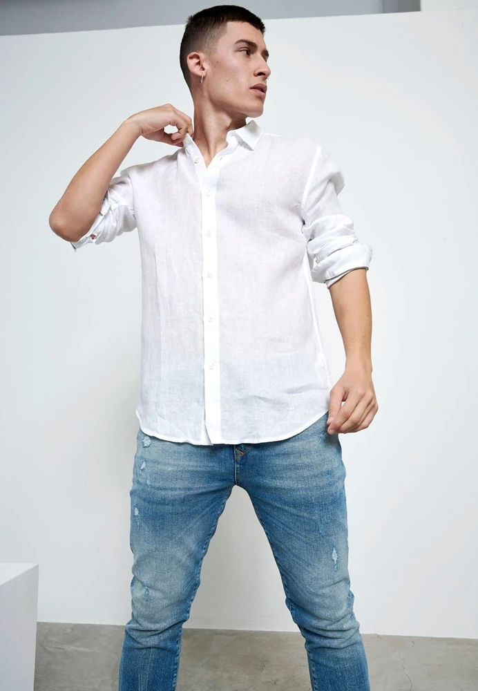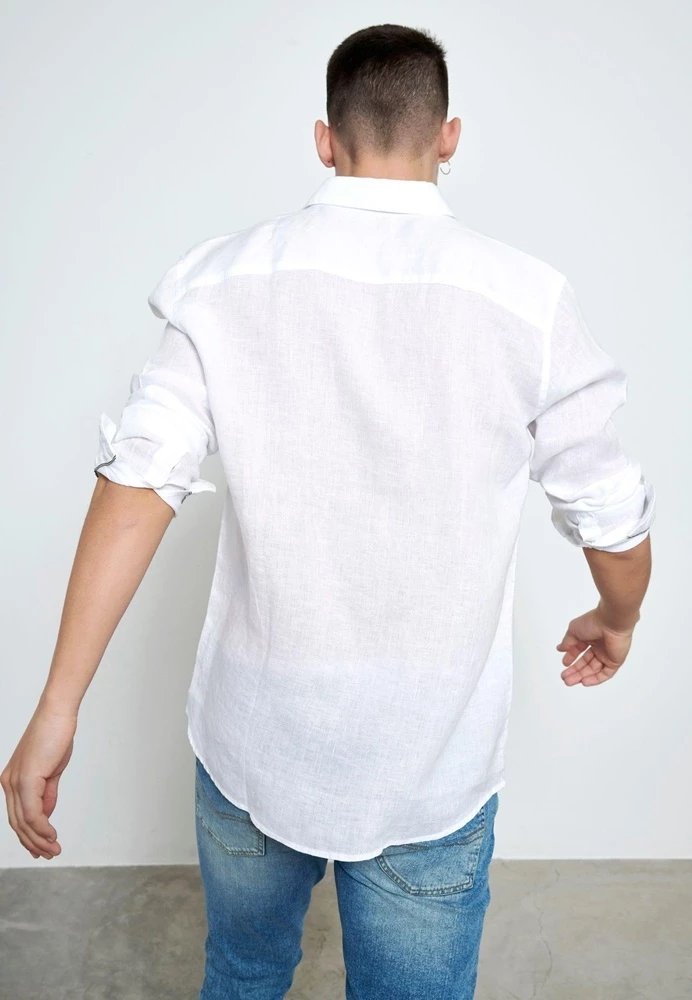 Ανδρικό λινό πουκάμισο FUNKY BUDDHA σε λευκό χρώμα. Από βαμβακερή σύνθεση, σε ίσια γραμμή. Έχει μακριά μανίκια και κλάσικό button-down γιακά. Κλείνει με κουμπάκια μπροστά.