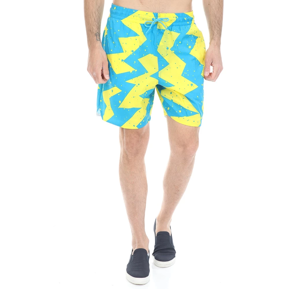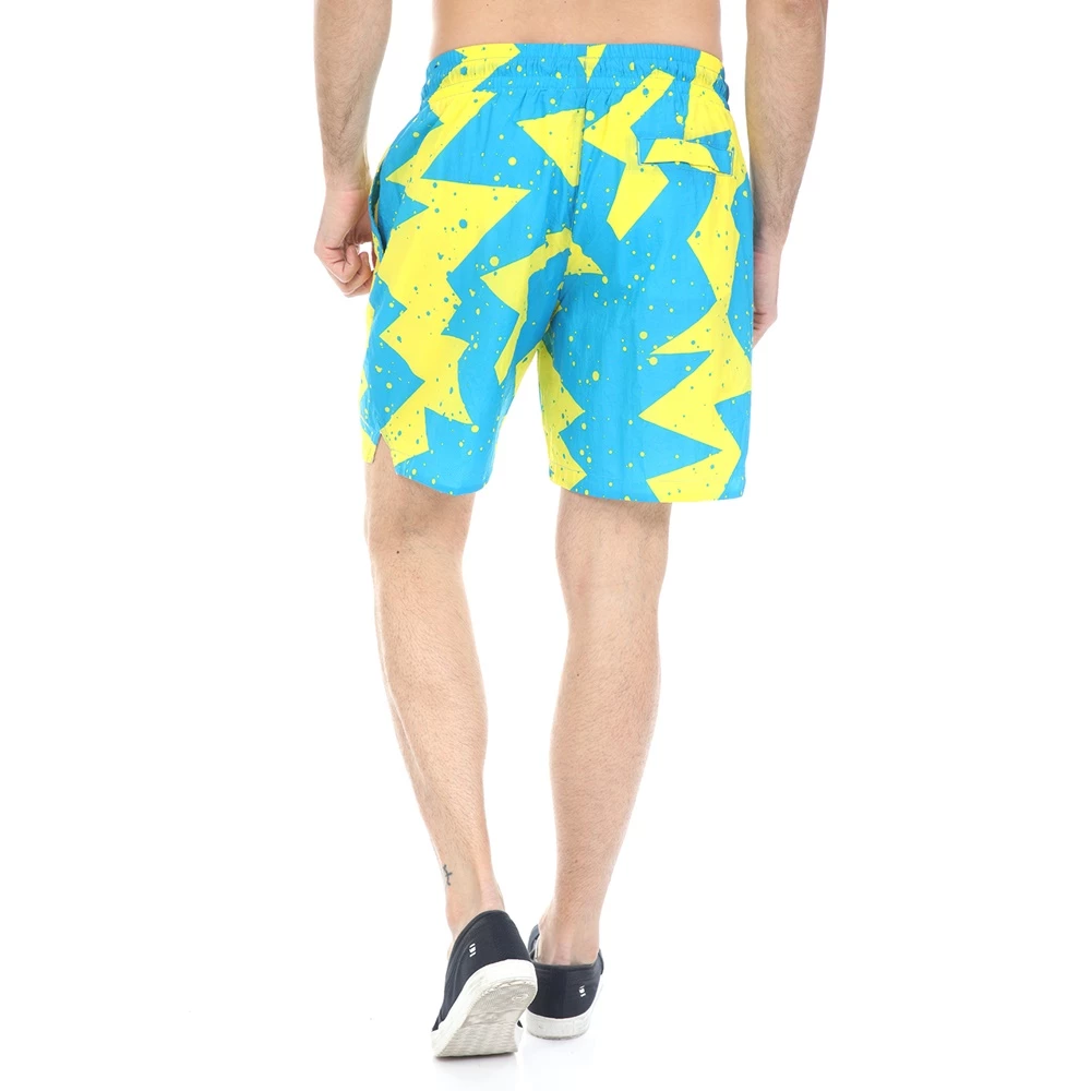 Ανδρικό μαγιό βερμούδα NIKE σε μπλε απόχρωση, με κίτρινο γεωμετρικό μοτίβο. Από ανάλαφρη σύνθεση, με διχτυωτή επένδυση για άνεση και δροσερή αίσθηση. Διαθέτει λάστιχο με κορδόνι στη μέση, δύο τσέπες στα πλάγια και μία τσέπη πίσω.