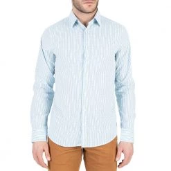 Ανδρικό μακρυμάνικο πουκάμισο σε γαλάζια απόχρωση με ριγέ μοτίβο, που συνδυάζει