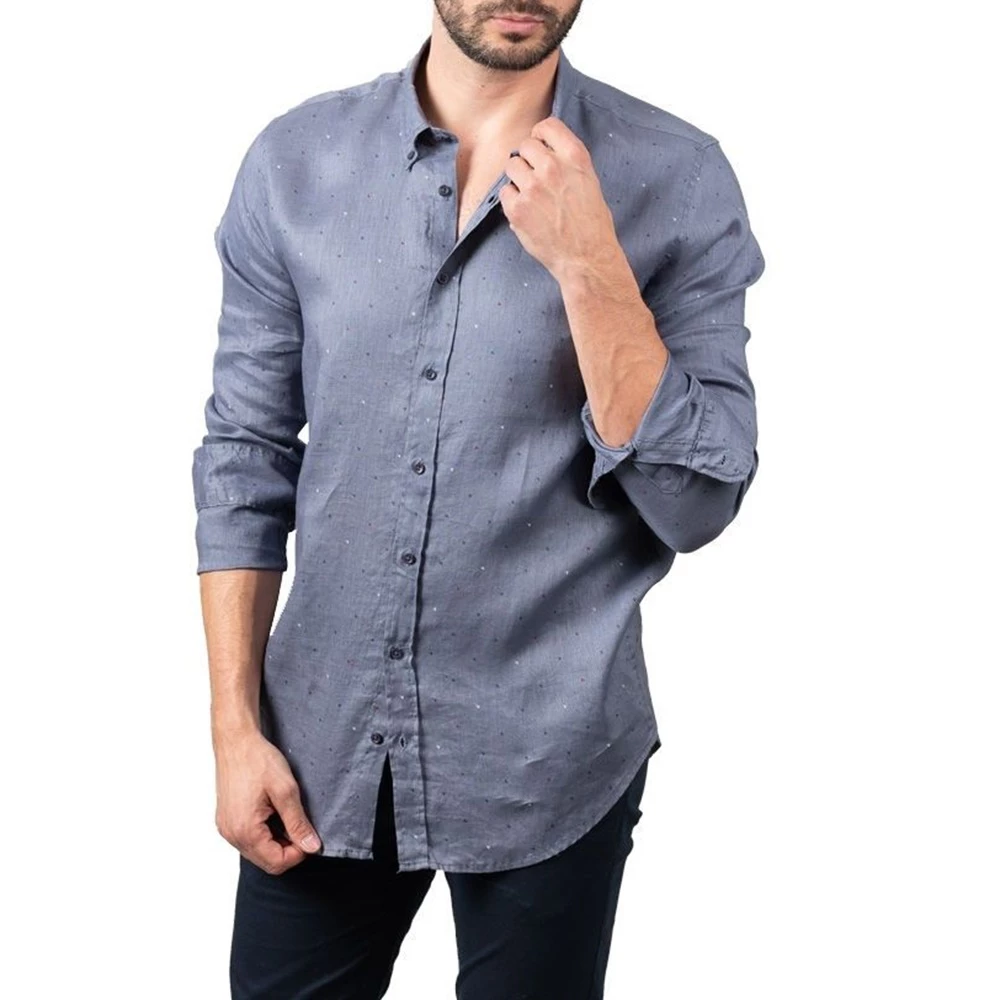 Ανδρικό λινό πουκάμισο OCEAN SHARK σε μπλέ denim απόχρωση, με εκτύπωση. Έχει μακρυά μανίκια και άνετη κλασσική γραμμή.