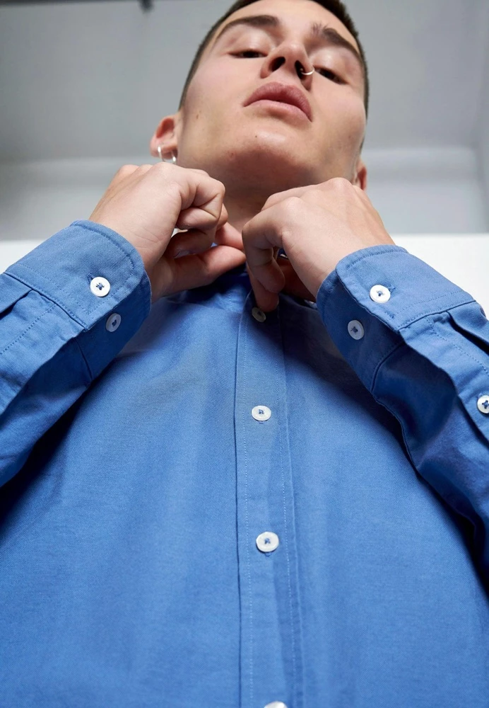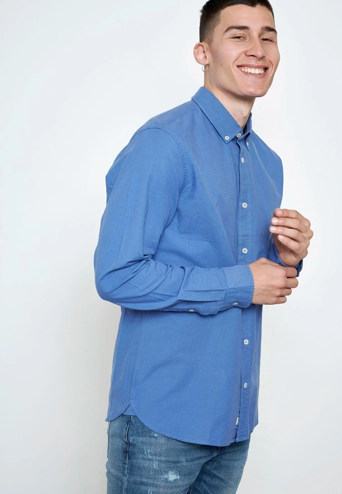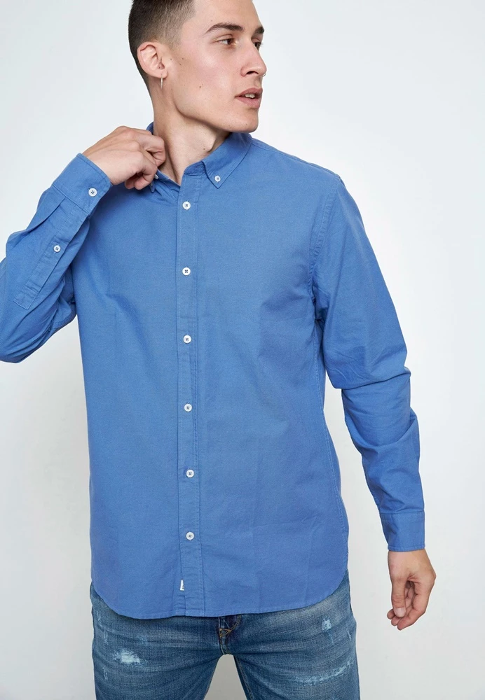 Ανδρικό oxford πουκάμισο FUNKY BUDDHA σε ανοιχτό μπλε χρώμα. Από βαμβακερή σύνθεση, έχει regular fit. μακριά μανίκια και κλάσικό button-down γιακά. Κλείνει με κουμπάκια μπροστά.