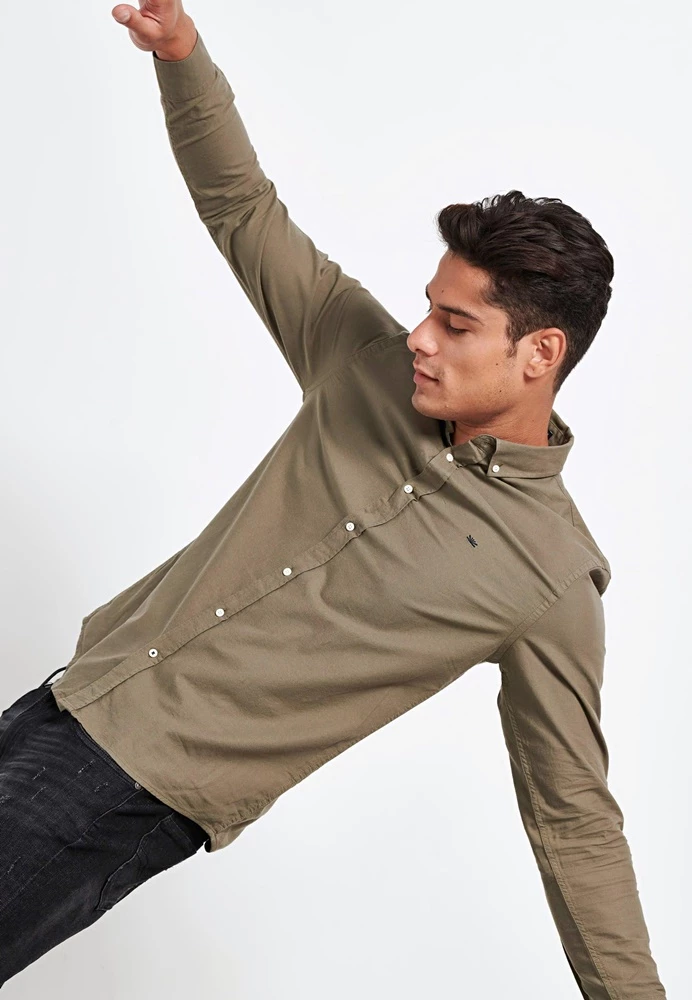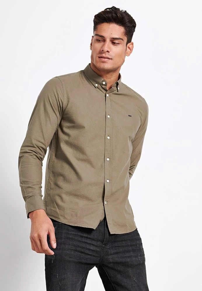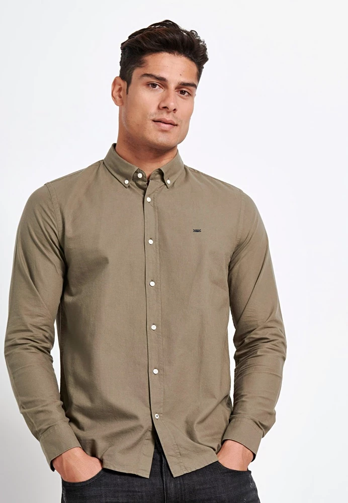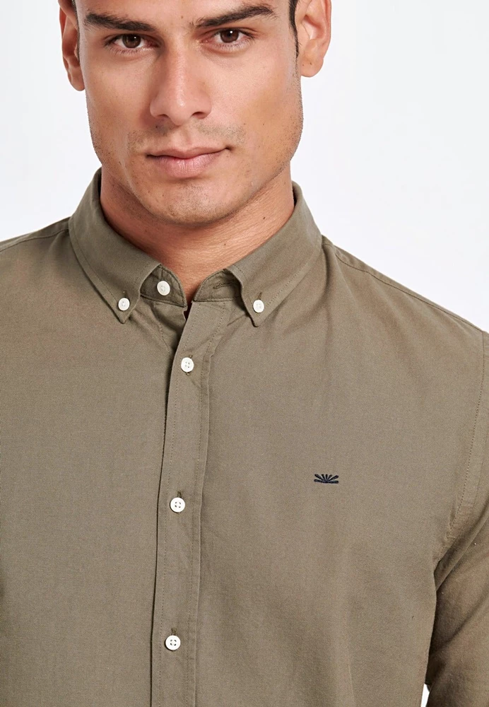 Ανδρικό oxford πουκάμισο FUNKY BUDDHA σε καφέ απόχρωση, με κεντημάνο logo στο στήθος. Από βαμβακερή σύνθεση, σε ίσια γραμμή. Έχει μακριά μανίκια και κλάσικό button-down γιακά. Κλείνει με κουμπάκια μπροστά.