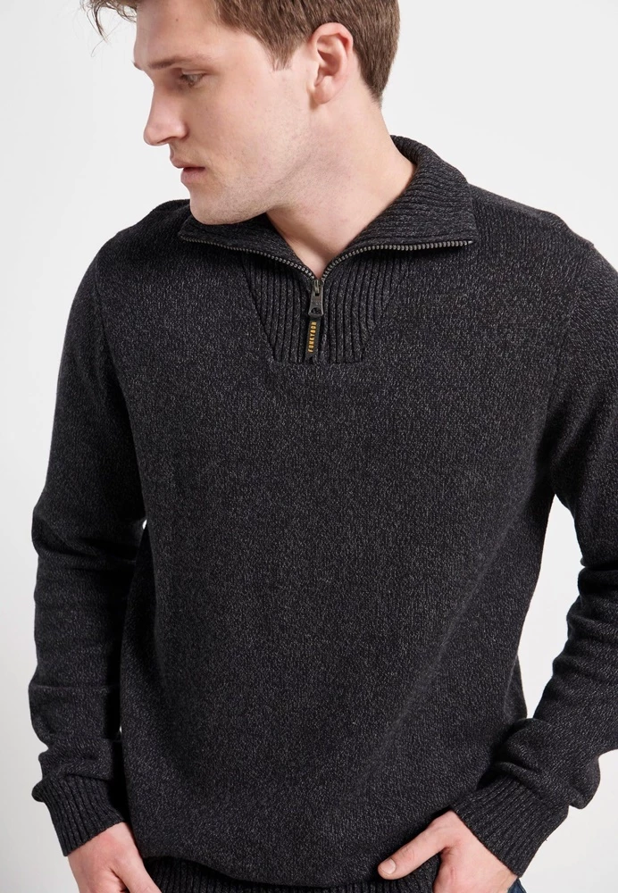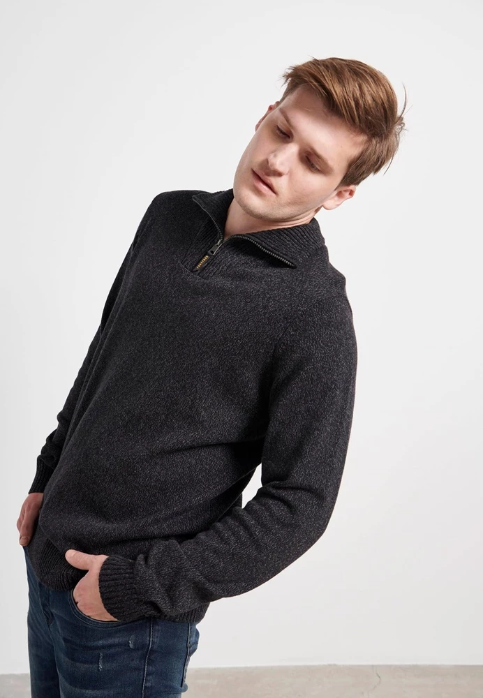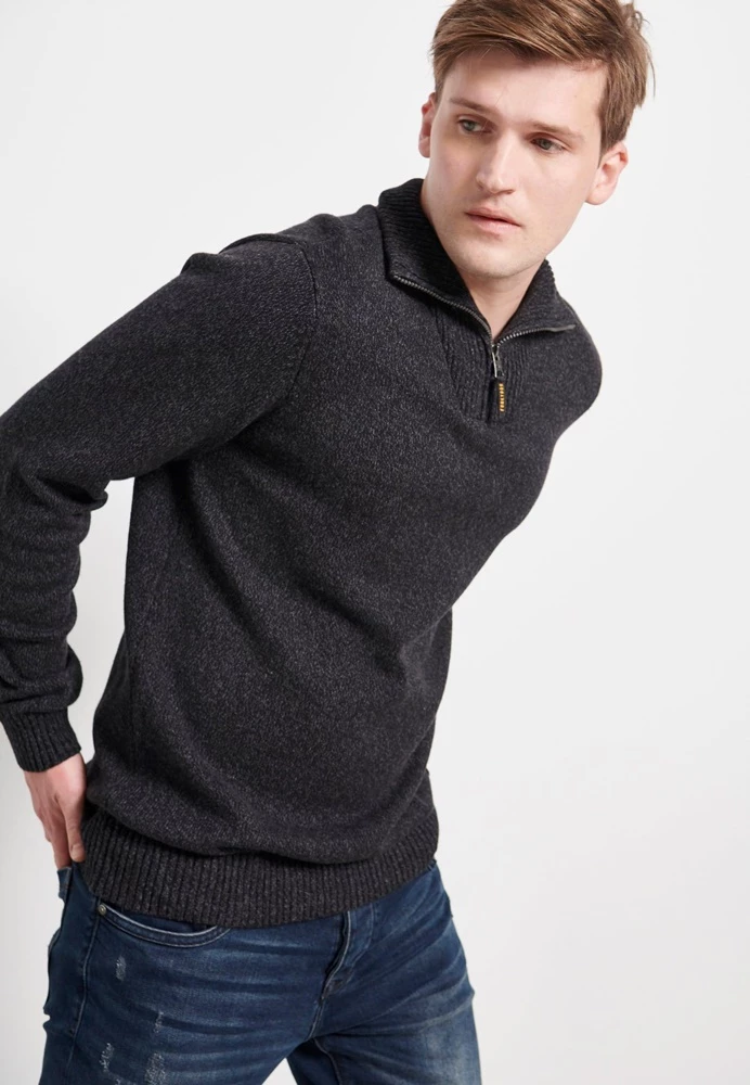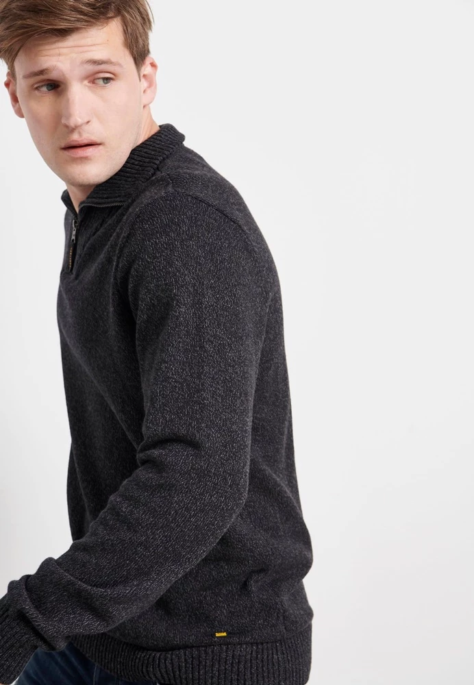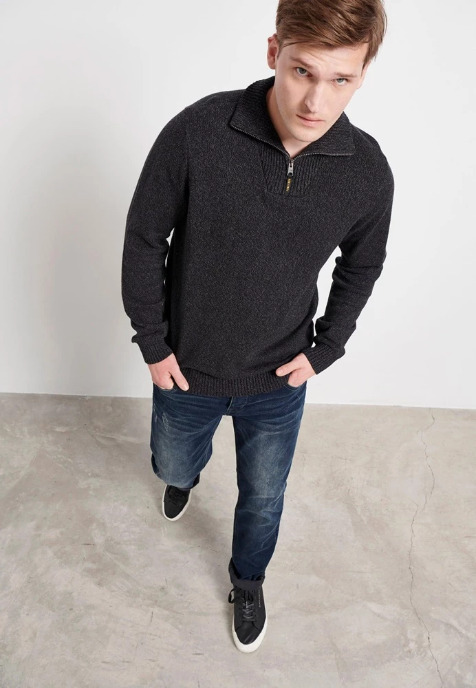Ανδρικό πλεκτό FUNKY BUDDHA σε μαύρο χρώμα. Σε ίσια γραμμή, από βαμβακερή πλέξη. Έχει μακριά μανίκια και όρθια λαιμόκοψη με φερμουάρ. Λάστιχο ριμπ στις μανσέτες και στην βάση.