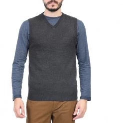 Ανδρικό πλεκτό γιλέκο BATTERY σε ανθρακί απόχρωση. Σε ίσια γραμμή, από βαμβακερή σύνθεση. Είναι αμάνικο με V λαιμόκοψη. Λάστιχο ριμπ στη βάση και τους ώμους.