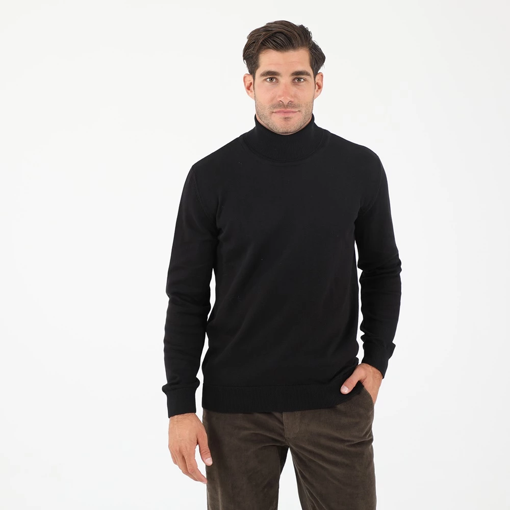 Ανδρικό πλεκτό ζιβάγκο DORS σε μαύρο χρώμα. Από βαμβακερή σύνθεση, με κανονική γραμμή. Έχει μακριά μανίκια και όρθια στογγυλή λαιμόκοψη. Διαθέτει λάστιχο rib στα τελειώματα.