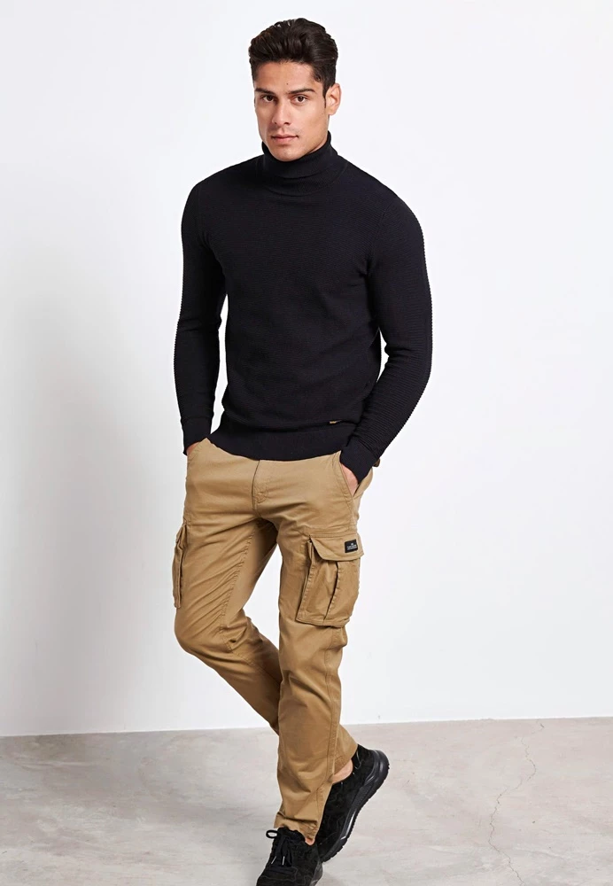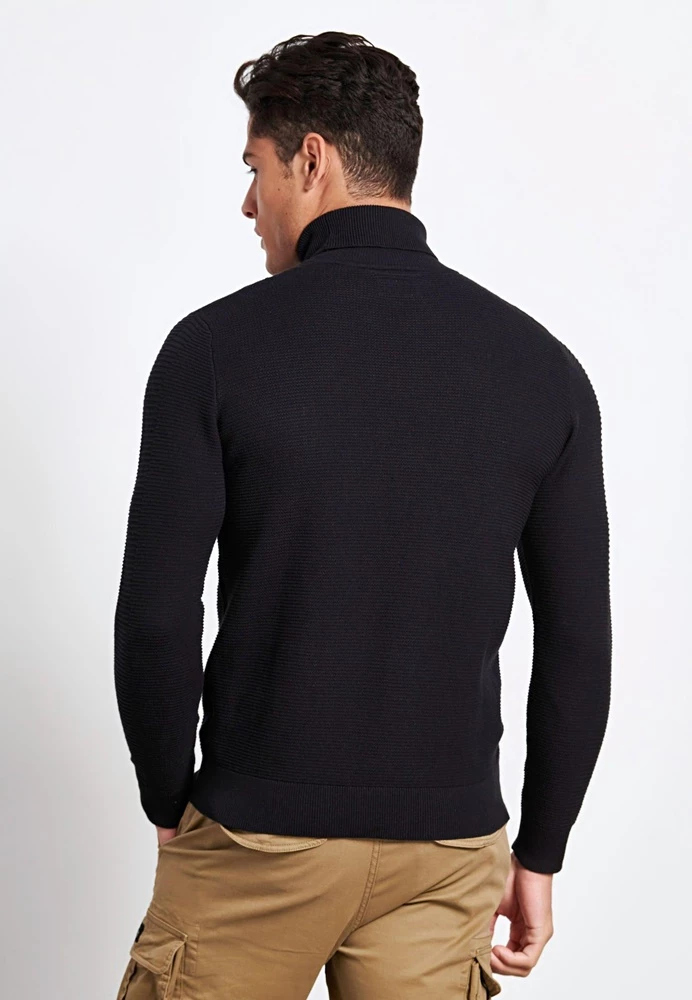 Ανδρικό πλεκτό ζιβάγκο FUNKY BUDDHA σε μαύρο χρώμα. Σε ίσια γραμμή, από βαμβακερή πλέξη. Έχει μακριά μανίκια και όρθια γυριστή λαιμόκοψη. Λάστιχο ριμπ στις μανσέτες και στην βάση.