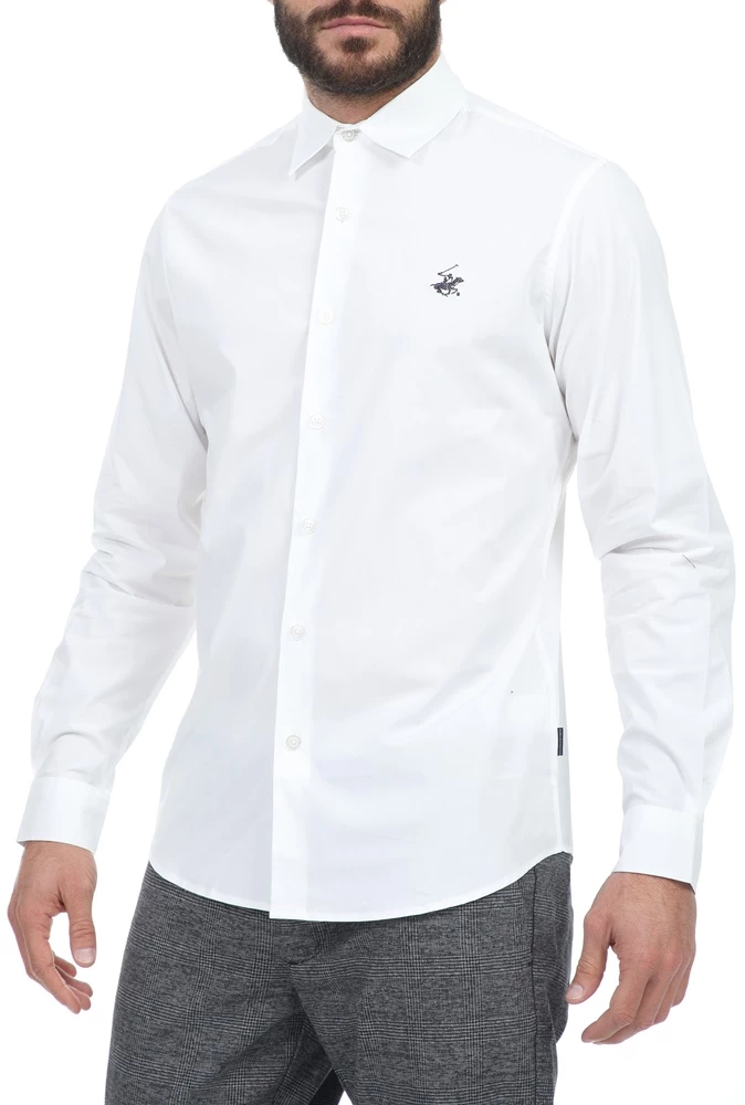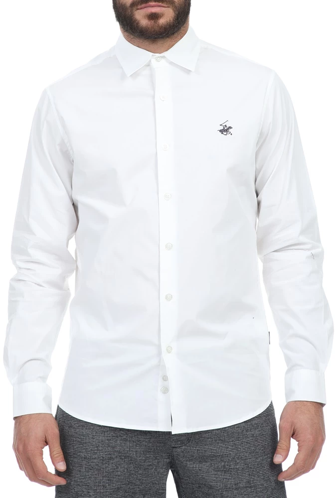 Ανδρικό πουκάμισο BEVERLY HILLS POLO CLUB λευκό, με κεντημένο λογότυπο στο στήθος. Με slim εφαρμογή, από stretch βαμβακερή σύνθεση. Έχει μακριά μανίκια και γιακά με ελεύθερες άκρες.