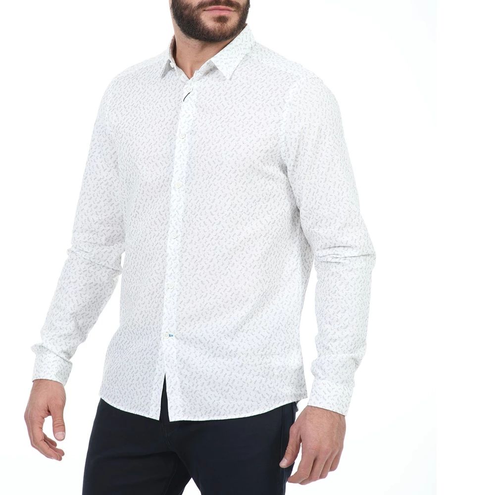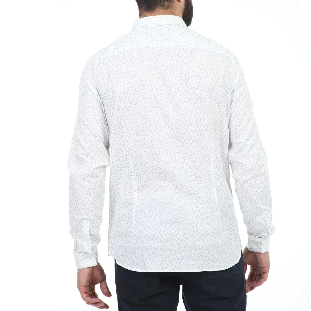 Ανδρικό πουκάμισο σε λευκή απόχρωση με διακριτικό μοτίβο. Έχει κλασικό στιλ και γιακά. Θα το συνδυάσεις εύκολα με όλα σου τα ρούχα.