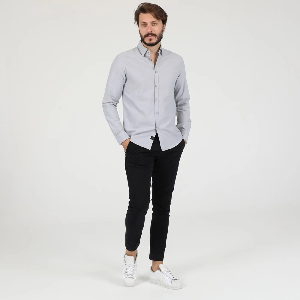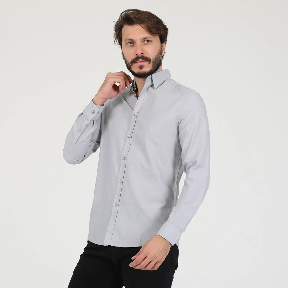 Ανδρικό πουκάμισο DIRTY LAUNDRY σε γκρι απόχρωση. Με μακριά μανίκια και κλασικό γιακά με μυτερές άκρες. Κλείνει με κουμπιά μπροστά.