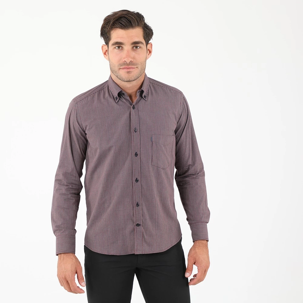 Ανδρικό πουκάμισο DORS με κόκκινο και μπλε καρό μοτίβο και μία τσέπη στο στήθος. Σε ίσια γραμμή, από βαμβακερή σύνθεση. Έχει μακριά μανίκια, κλασικό button down γιακά και κλείνει με κουμπάκια μπροστά.