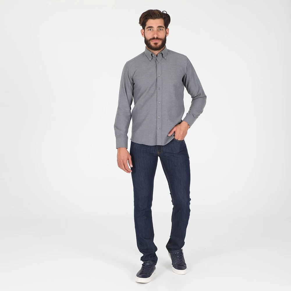 Ανδρικό πουκάμισο DORS σε μπλε απόχρωση. Είναι σε ίσια γραμμή, από βαμβακερή σύνθεση. Με μακριά μανίκια και γιακά με κουμπάκια στις άκρες. Κλείνει με κουμπιά μπροστά.