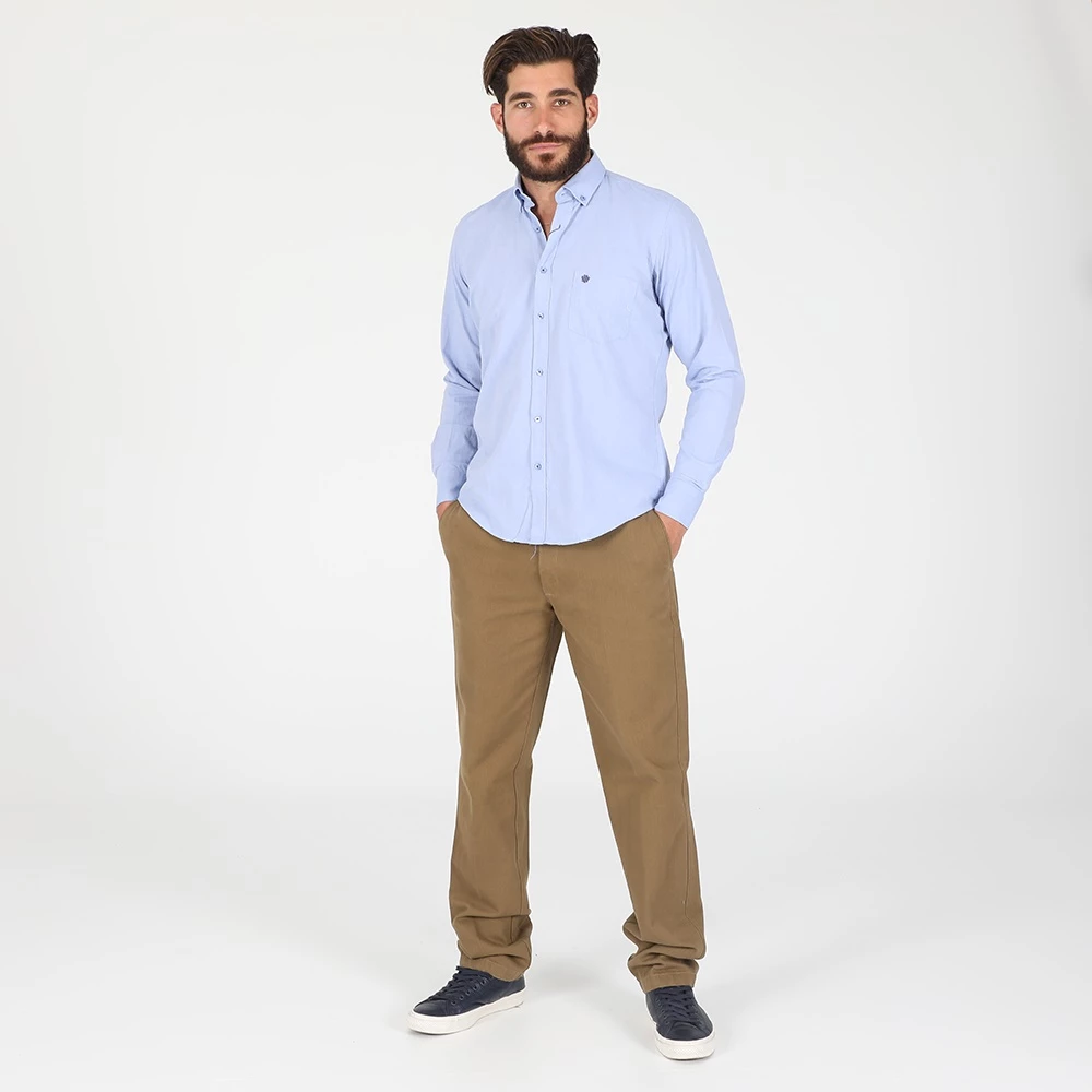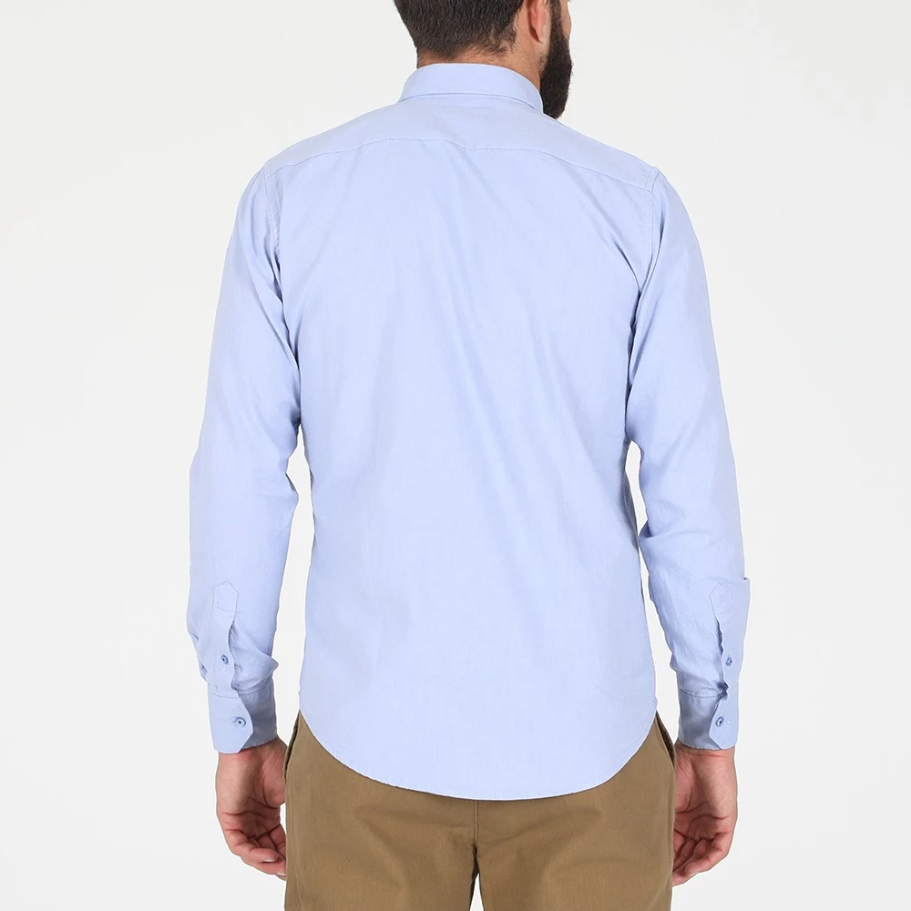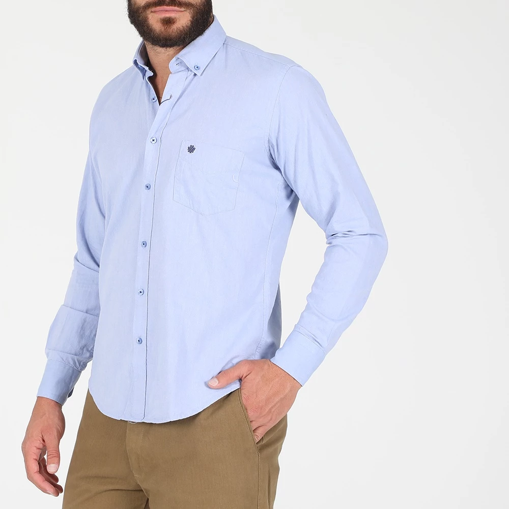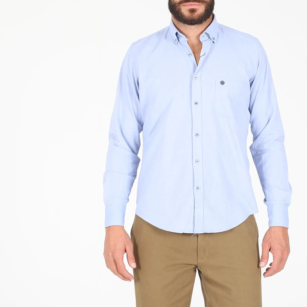 Ανδρικό πουκάμισο DORS σε μπλε απόχρωση. Είναι σε ίσια γραμμή, από βαμβακερή σύνθεση. Με μακριά μανίκια και γιακά με κουμπάκια στις άκρες. Διαθέτει μία τσέπη στο στήθος και κλείνει με κουμπιά μπροστά.