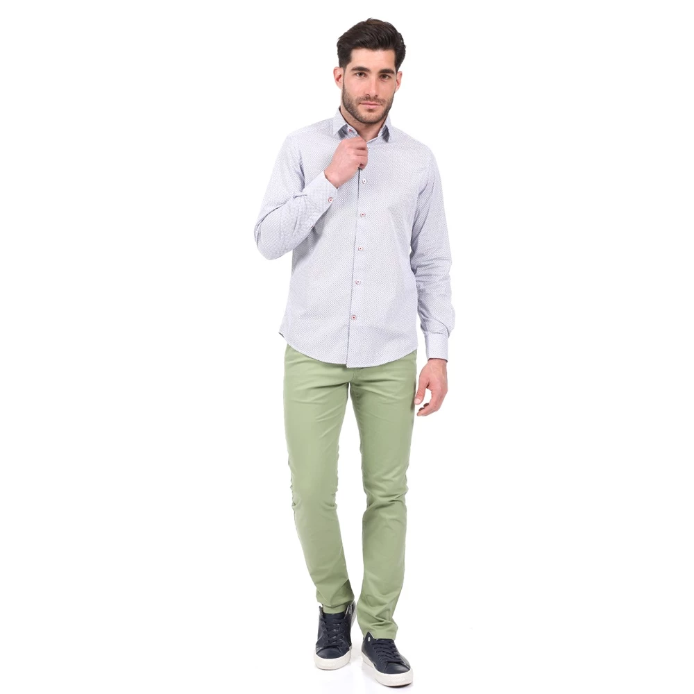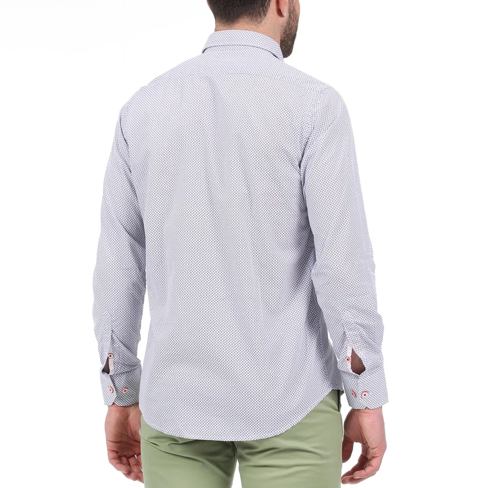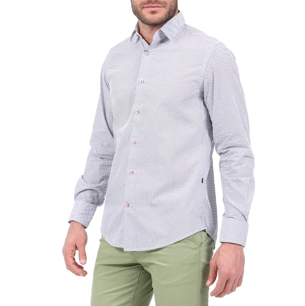 Ανδρικό πουκάμισο DORS με μοτίβο σε μπλε απόχρωση. Είναι σε ίσια γραμμή, από βαμβακερή σύνθεση. Με μακριά μανίκια και γιακά με κουμπάκια στις άκρες. Κλείνει με κουμπιά μπροστά.