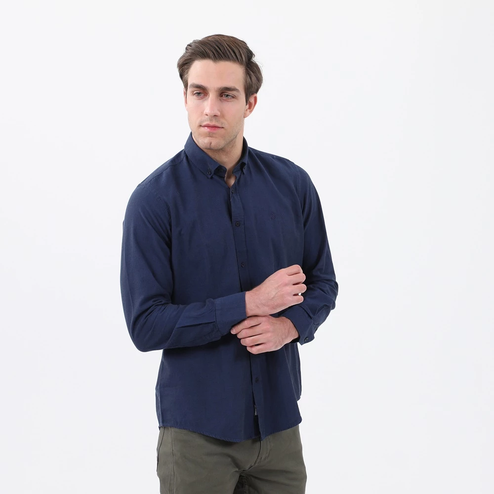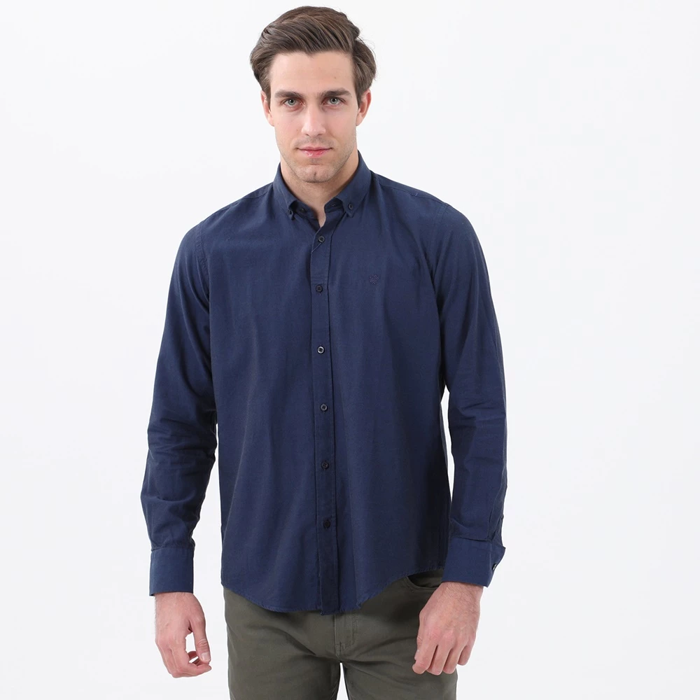 Ανδρικό πουκάμισο DORS σε μπλε χρώμα. Σε ίσια γραμμή, από βαμβακερή σύνθεση. Έχει μακριά μανίκια, κλασικό button down γιακά και κλείνει με κουμπάκια μπροστά.