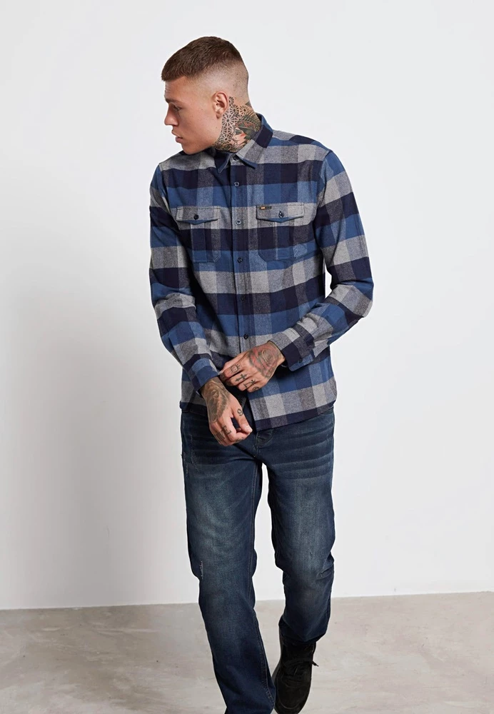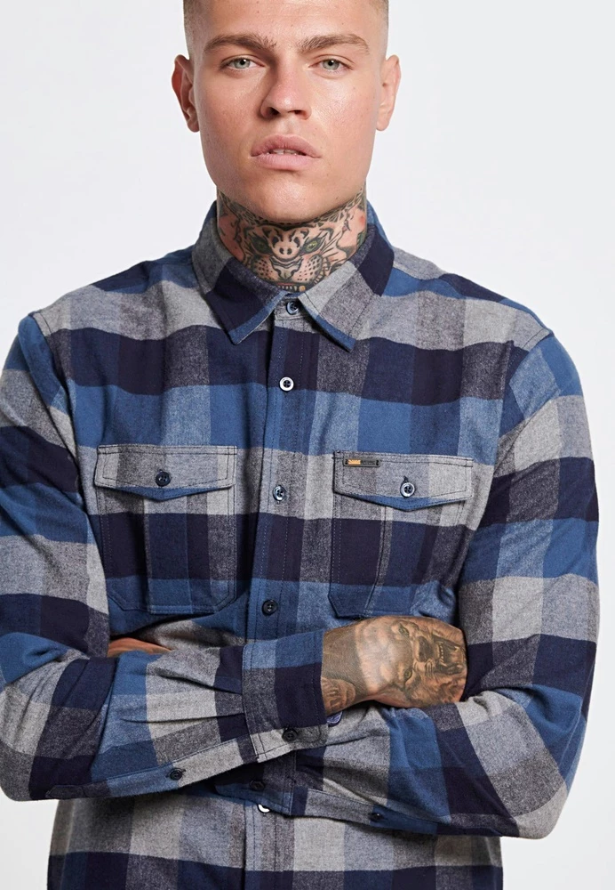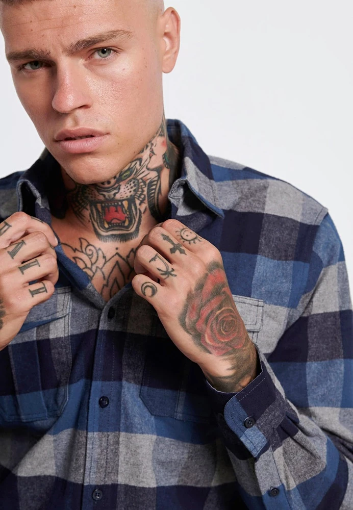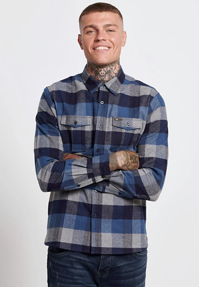 Ανδρικό πουκάμισο FUNKY BUDDHA σε μπλε, γκρι χρώμα, με καρό μοτίβο. Από βαμβακερή σύνθεση, σε ίσια γραμμή. Έχει μακριά μανίκια και κλάσικό button-down γιακά. Κλείνει με κουμπάκια μπροστά.