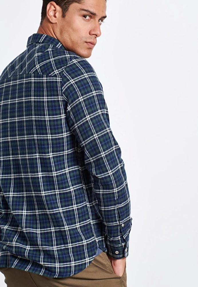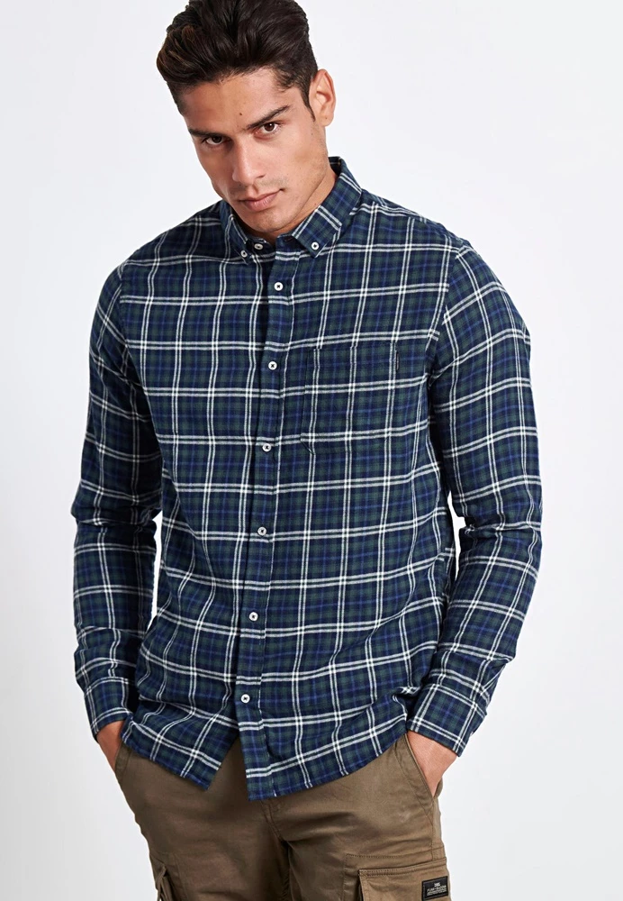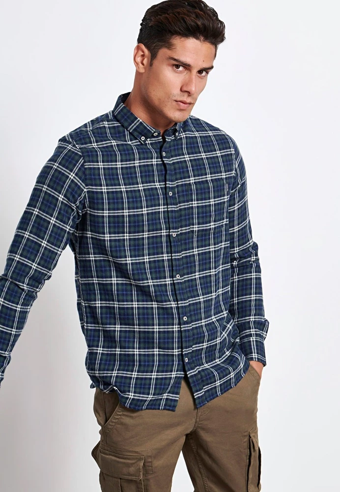 Ανδρικό πουκάμισο FUNKY BUDDHA σε μπλε, λευκό χρώμα, με καρό μοτίβο. Από βαμβακερή σύνθεση, σε ίσια γραμμή. Έχει μακριά μανίκια και κλάσικό button-down γιακά. Κλείνει με κουμπάκια μπροστά.