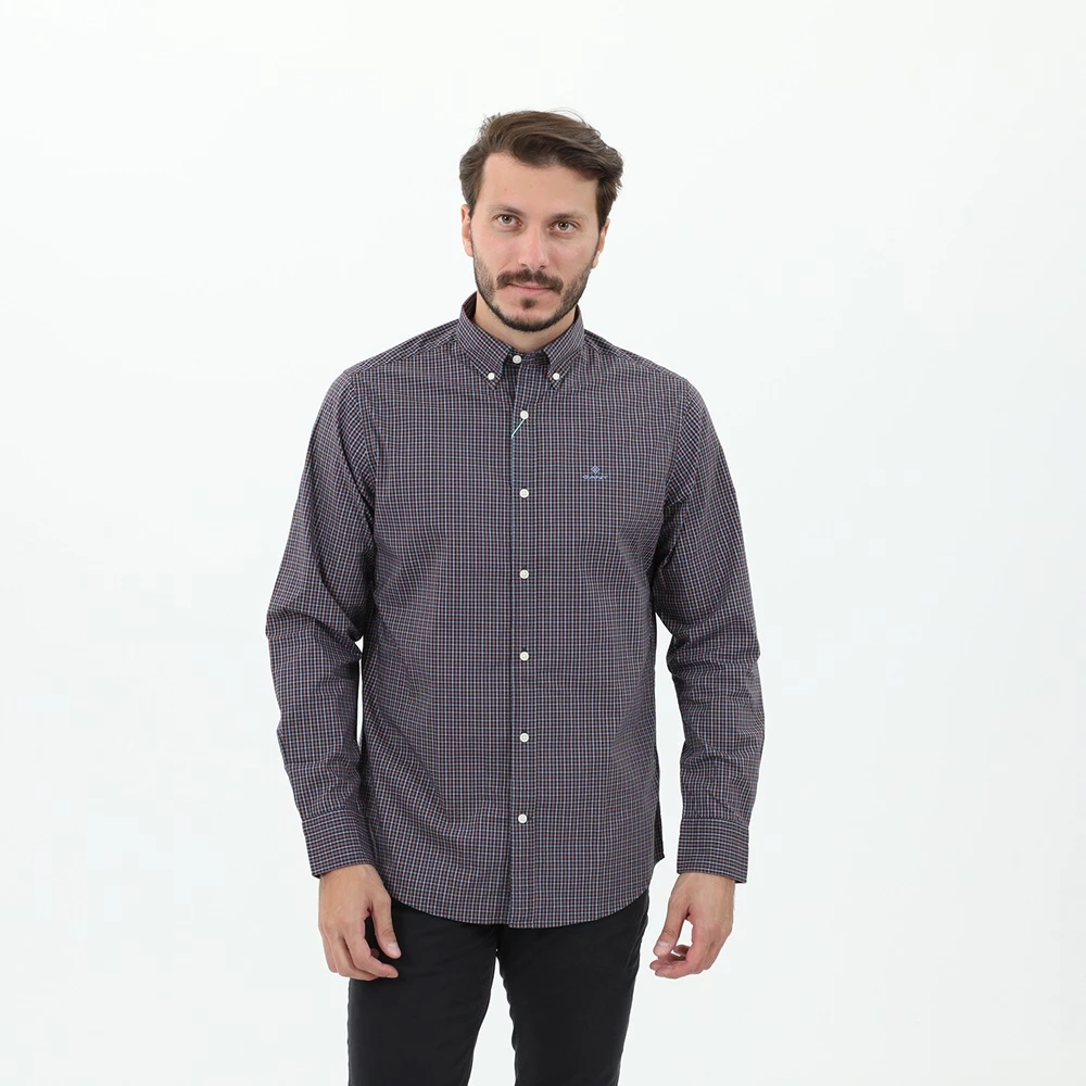 Ανδρικό πουκάμισο GANT με καρό μπλε κόκκινο μοτίβο και κεντημένο logo στο στήθος. Από βαμβακερή σύνθεση, σε ίσια γραμμή. Έχει μακριά μανίκια και κλασικό button down γιακά. Κλείνει με κουμπιά μπροστά.