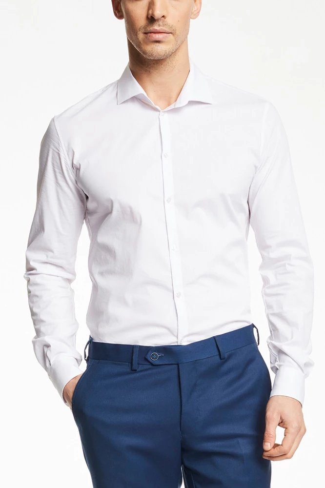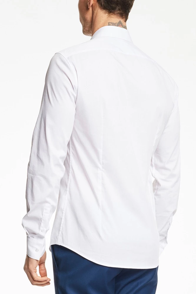Ανδρικό πουκάμισο GAUDI σε λευκό χρώμα. Σε slim γραμμή, με μακριά μανίκια και κλασικό γιακά με ελεύθερες άκρες. Κλείνει με κουμπιά μπροστά.