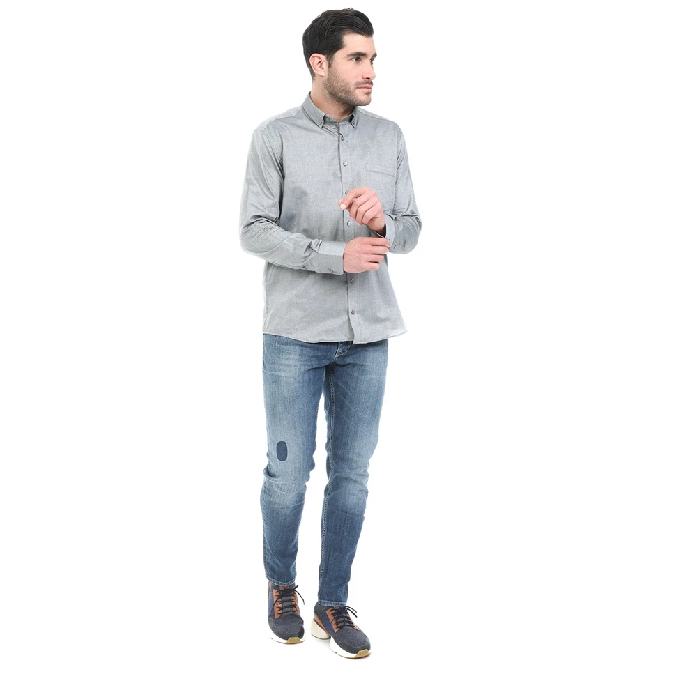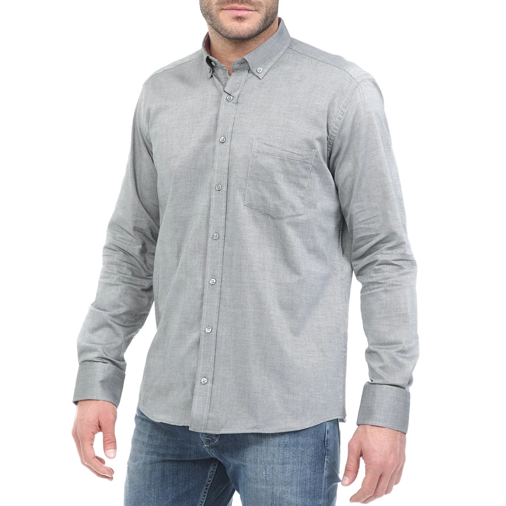 Ανδρικό πουκάμισο OCEAN SHARK σε γκρι απόχρωση. Από βαμβακερή σύνθεση, σε ίσια γραμμή. Έχει μακριά μανίκια και κλασικό oxford γιακά με ελεύθερες άκρες. Κλείνει με κουμπιά μπροστά.