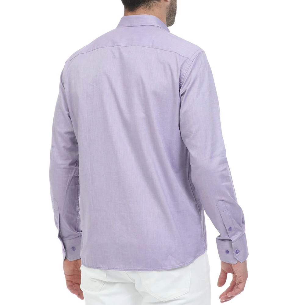 Ανδρικό πουκάμισο OCEAN SHARK σε μοβ απόχρωση. Από βαμβακερή σύνθεση, σε ίσια γραμμή. Έχει μακριά μανίκια και κλασικό oxford γιακά με ελεύθερες άκρες. Κλείνει με κουμπιά μπροστά.