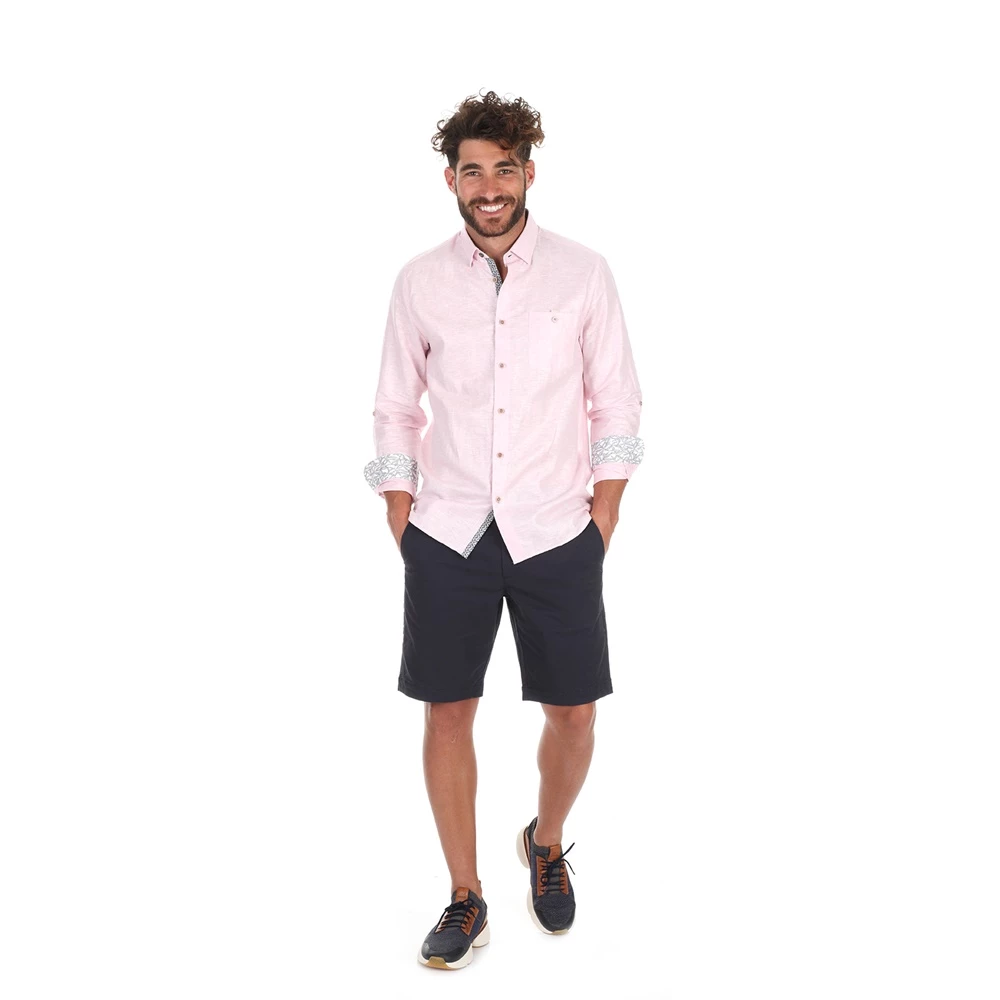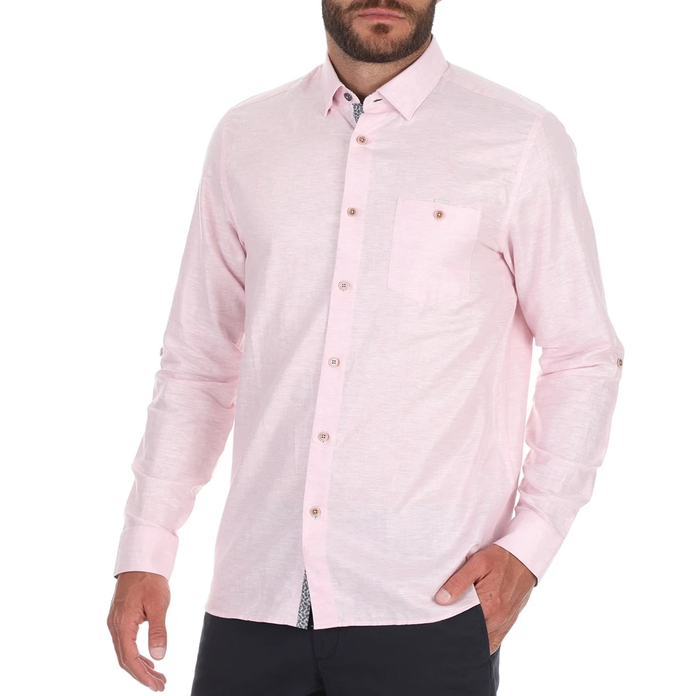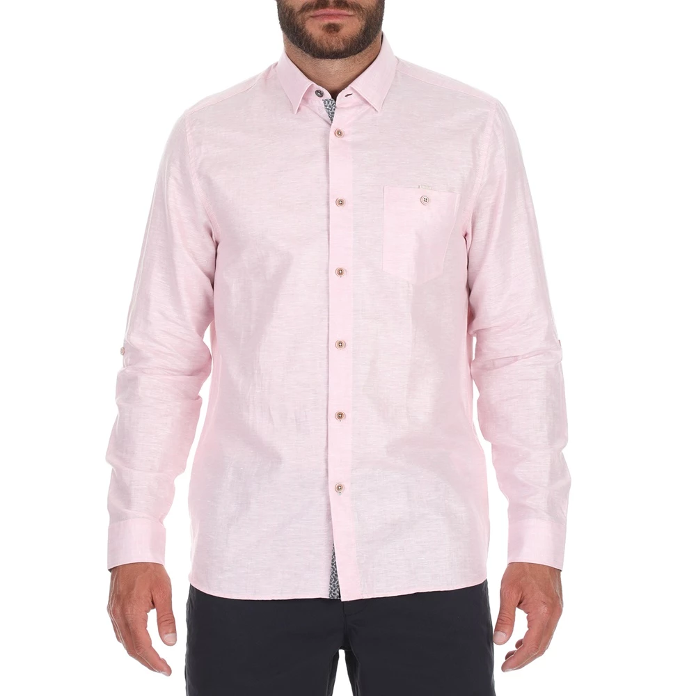 Ανδρικό πουκάμισο EMUU από τον οίκο TED BAKER σε ροζ απόχρωση. Από λινή και βαμβακερή σύνθεση, σε ίσια γραμμή. Έχει μακριά μανίκια και κλασικό γιακά με ελέυθερες άκρες. Μία τσέπη στο στήθος και ιμάντες που συγκρατούν το ρεβέρ στα μανίκια. Κλείνει με κουμπιά μπροστά. Συνδυάστε το με chino βεμούδα ή παντελόνι, για κομψές casual καλοκαιρινές εμφανίσεις.