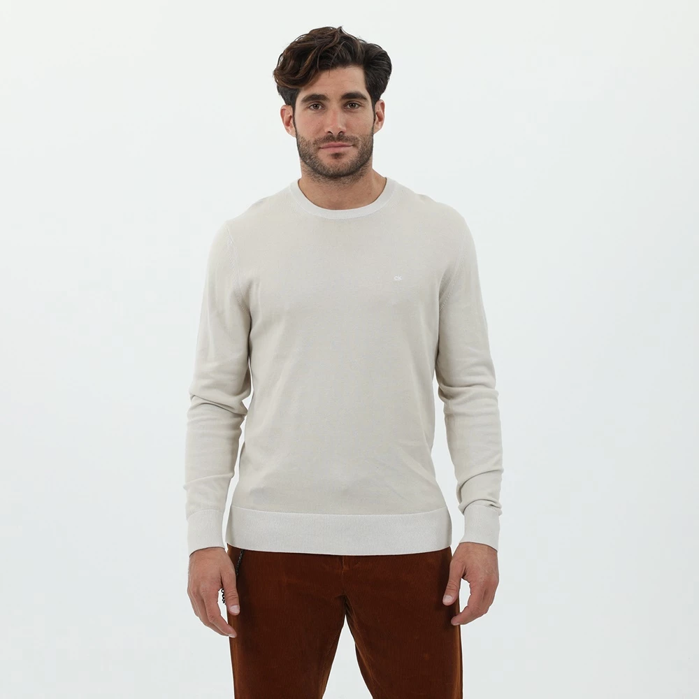 Ανδρικό πουλόβερ CALVIN KLEIN JEANS σε μπεζ απόχρωση. Από λεπτή βαμβακερή σύνθεση, με μεταξένια υφή. Έχει μακριά μανίκια, στρογγυλή λαιμόκοψη και διακριτικό κεντημένο logo στο στήθος. Λάστιχο rib στα τελειώματα.