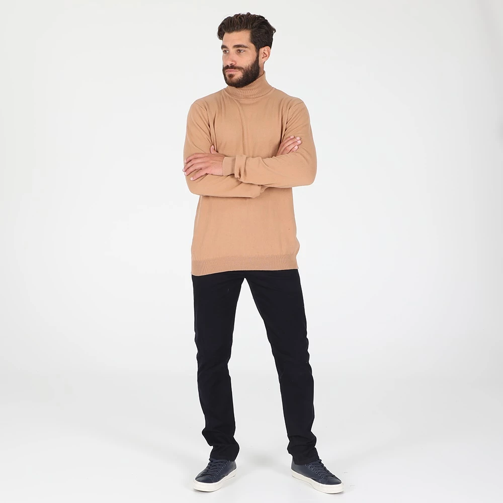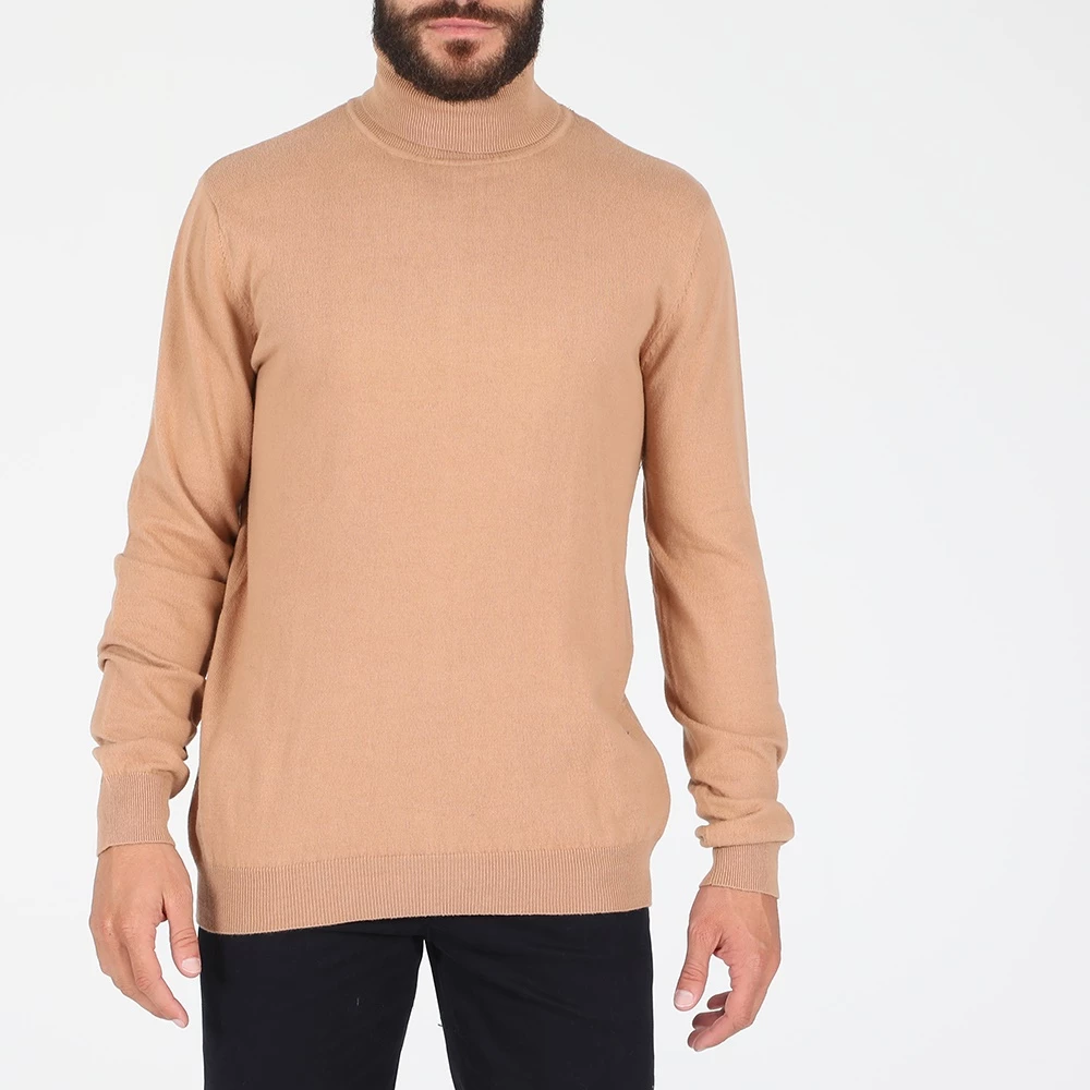 Ανδρικό πουλόβερ DORS σε μπζ απόχρωση. Σε ίσια γραμμή, με κανονική εφαρμογή και κασμιρένια αίσθηση. Έχει μακριά μανίκια και όρθια γυριστή λαιμόκοψη ζιβάγκο. Λάστιχο ριμπ στις μανσέτες και στην βάση.