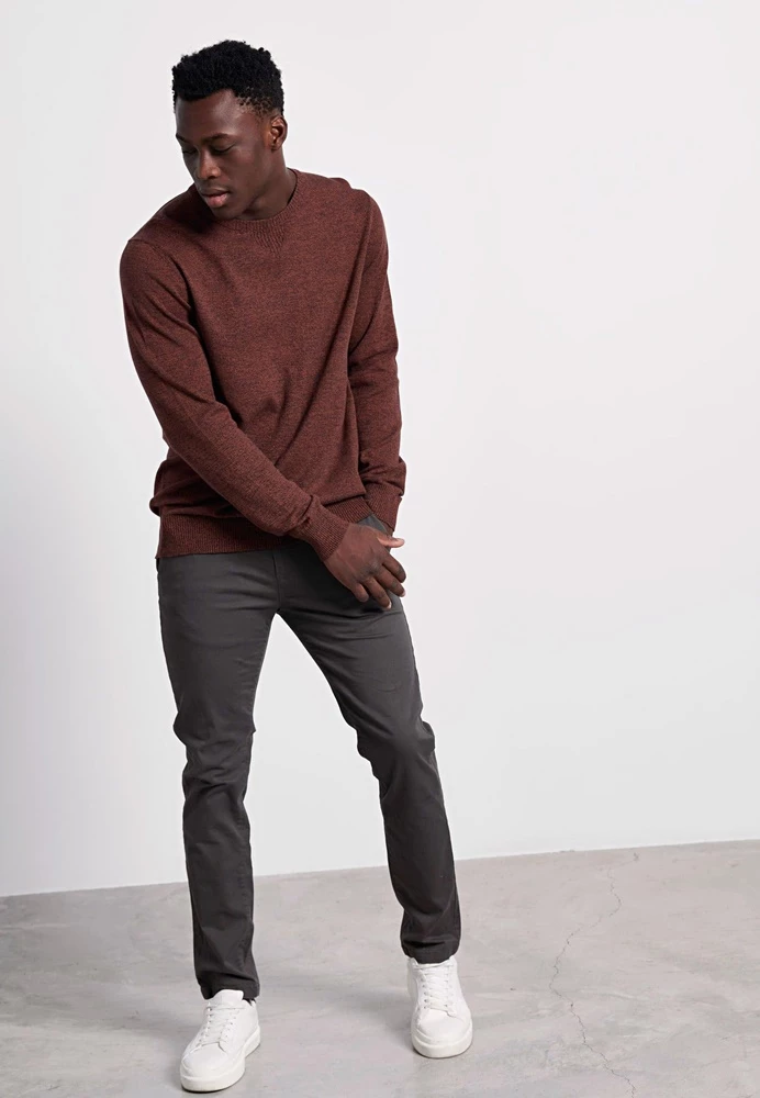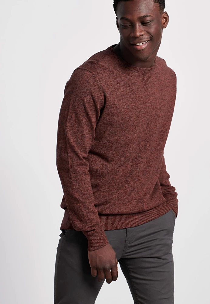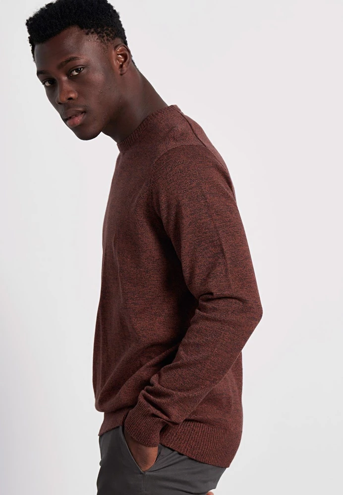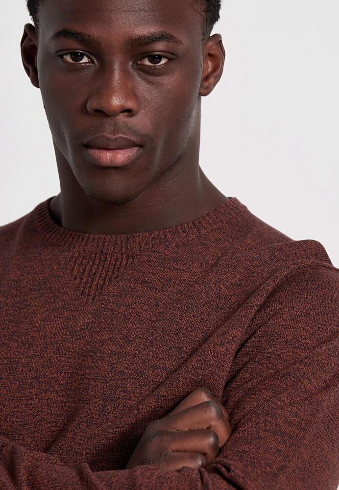Ανδρικό πουλόβερ FUNKY BUDDHA σε δίχρωμη καφέ και μπλε πλέξη με κεντημένο logo. Regular Fit, τελειώματα με λάστιχο Rib. Funky Buddha κέντημα στο στήθος.