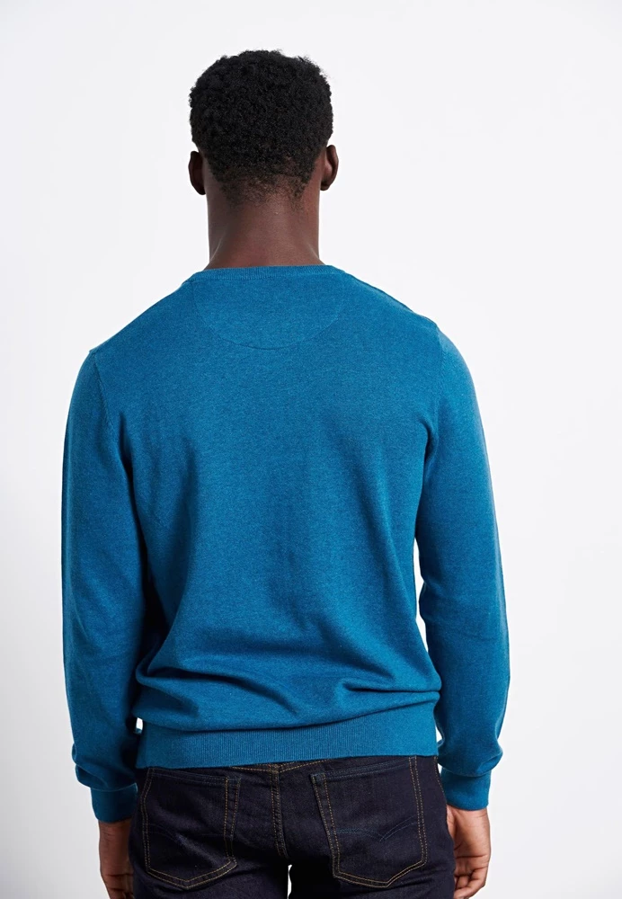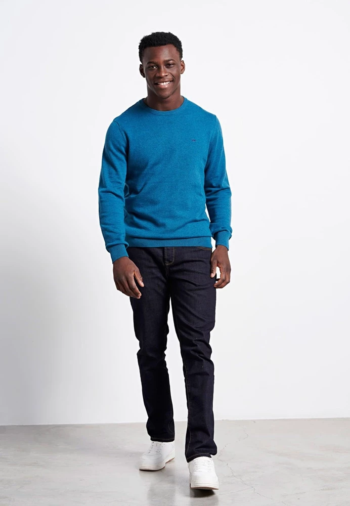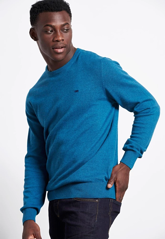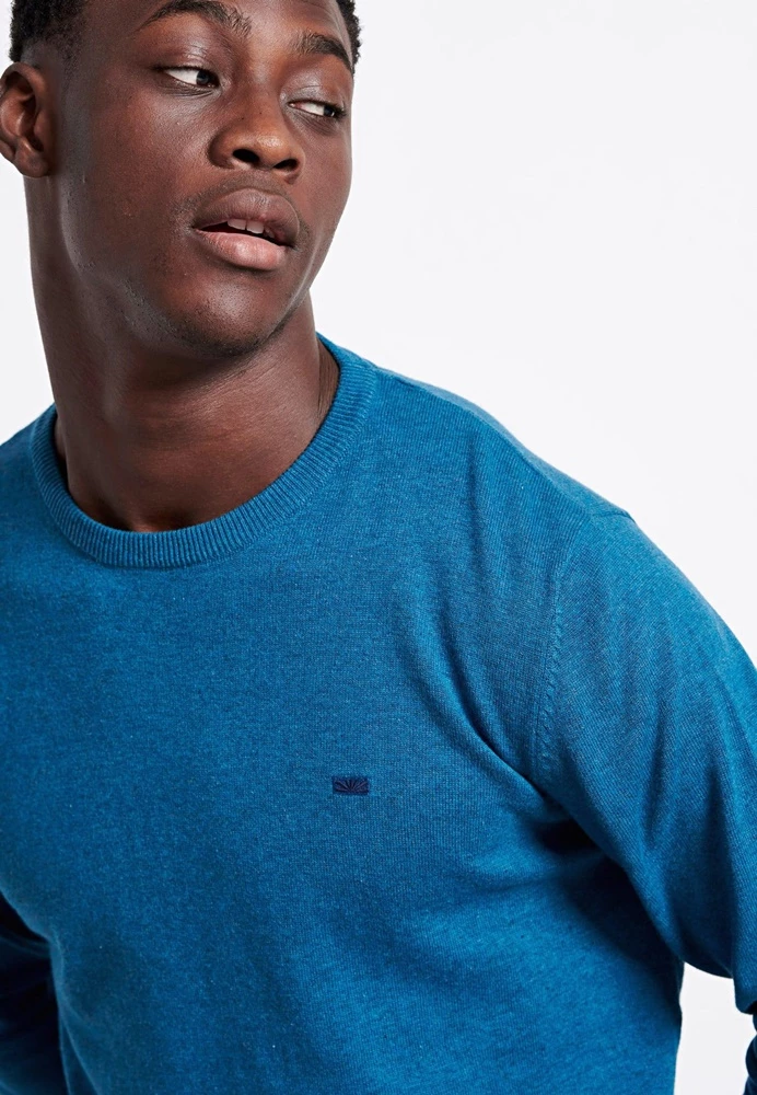 Ανδρικό πουλόβερ FUNKY BUDDHA σε μπλε απόχρωση, με κεντημένο logo στο στήθος. Από ζεστή βαμβάκερη πλέξη, με μακριά μανίκια και στρογγυλή λαιμόκοψη. Λάστιχο rib στα τελειώματα.