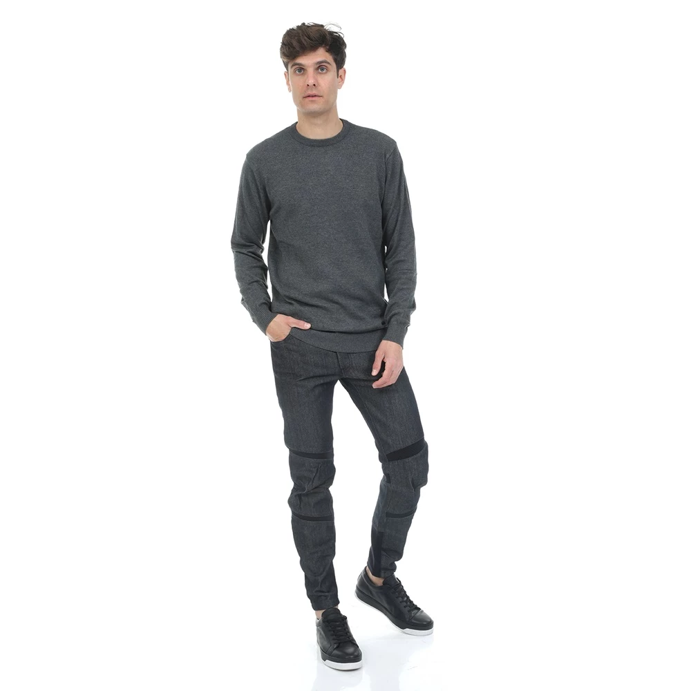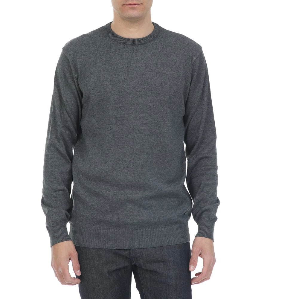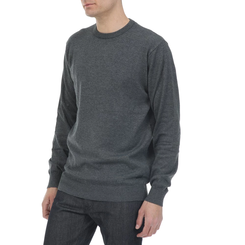 Ανδρικό πουλόβερ RUN σε γκρι απόχρωση. Από βαμβακερή πλέξη, σε ίσια γραμμή. Έχει μακριά μανίκια και στρογγυλή λαιμόκοψη. Λάστιχο ριμπ στις μανσέτες και την βάση.