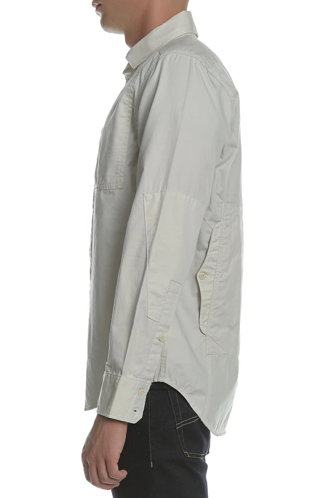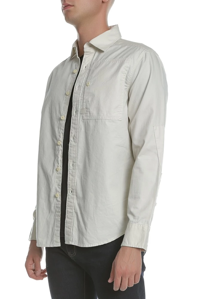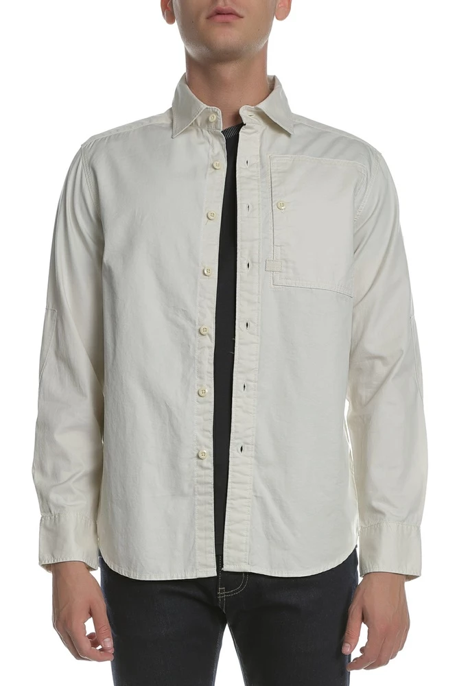 Ανδρικό μακρυμάνικο πουκάμισο G-Star σε εκρού χρώμα, τσέπες μπροστά και κανονική γραμμή. Οι λεπτομέρειες στο πίσω μέρος θα αναβαθμίσουν το στυλ σου από κλασικό σε μοντέρνο.