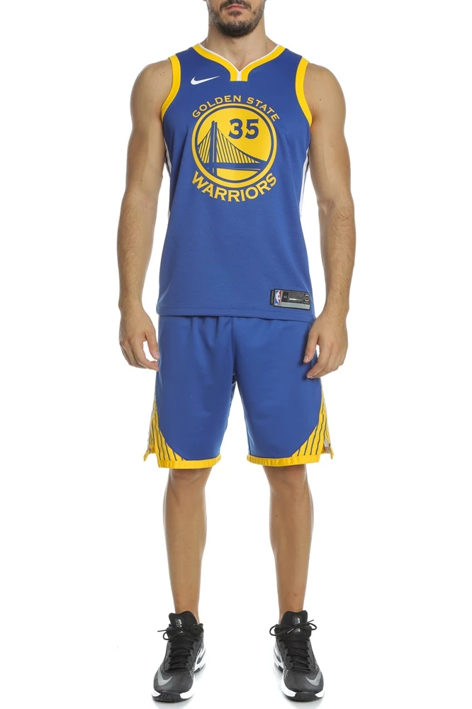 Μπασκετική βερμούδα της εμφάνισης των Golden State Warriors σε μπλε απόχρωση με κίτρινες λεπτομέρειες.
